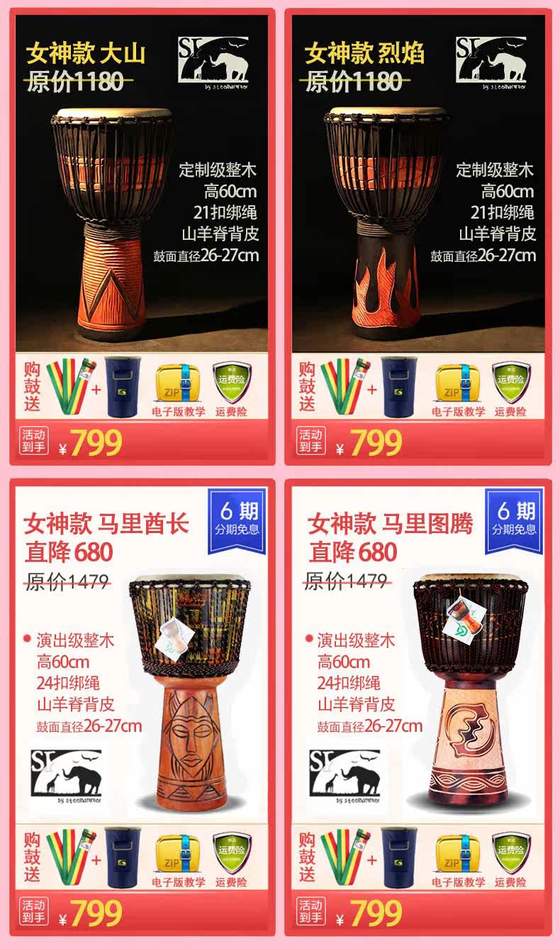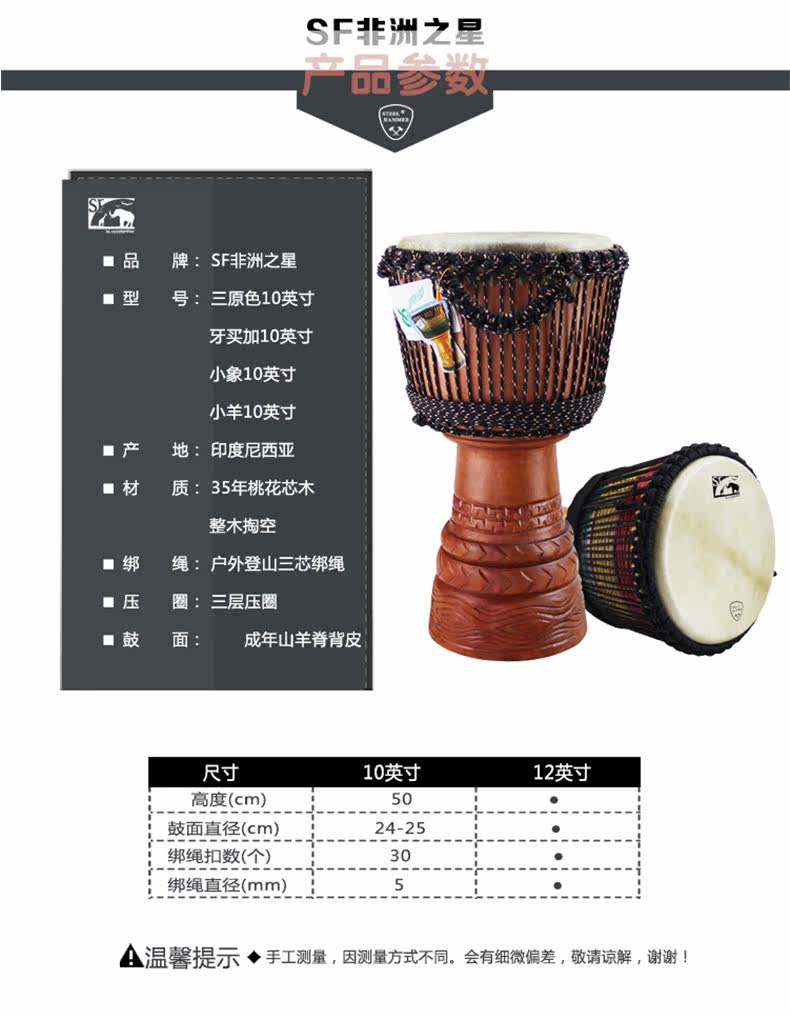 【Африканская звезда】Импортные африканские барабаны 10 дюймов 12 дюймов детские Новички Lijiang Ручной барабан выступает дверь