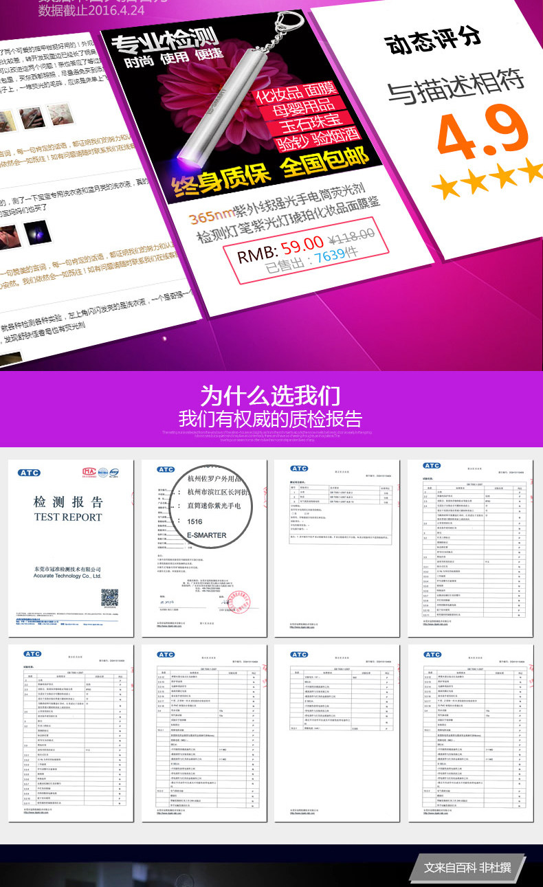 Древесина свет Ультрафиолетовый блики фонарика свет Флуоресцентная ручка обнаружения 365 нм для Идентификация