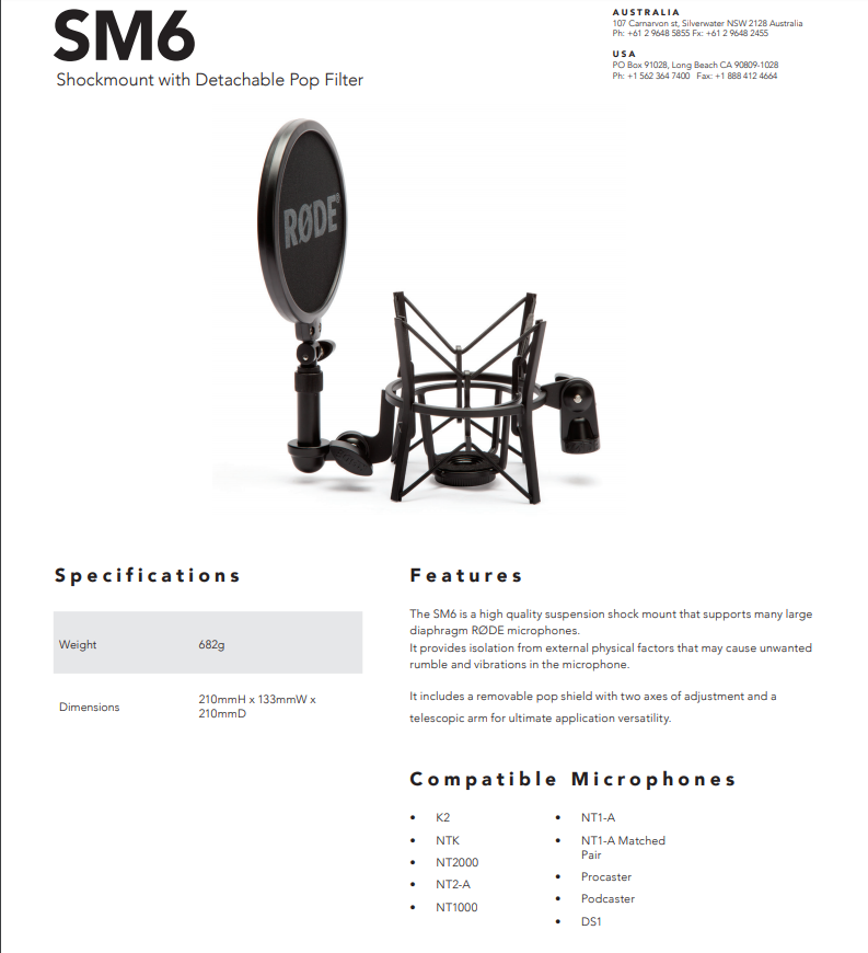 Rode в оригинальной упаковке УдаропрочныйSM2 один стиль Он подходит для Rode Classic II,  NT1000, NTK, NT2000, K2 и NT2-A Микрофон!