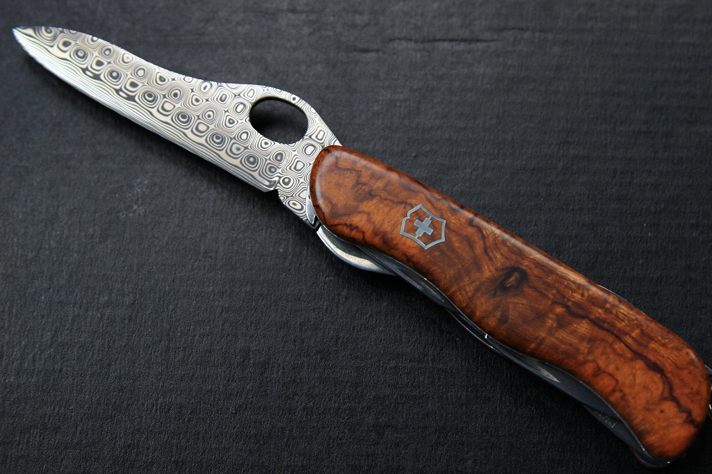 Швейцарский пороховой модифицированный клинок Damascus, модифицированная рукоять 111 мм швейцарский армейский нож, дисплей немецкого офицерского ножа