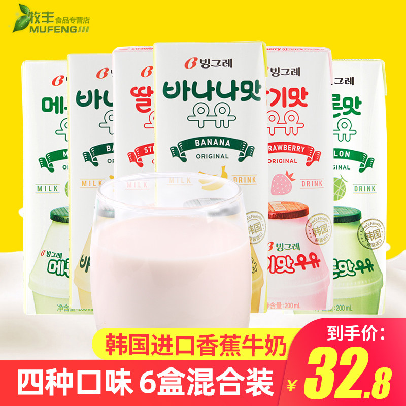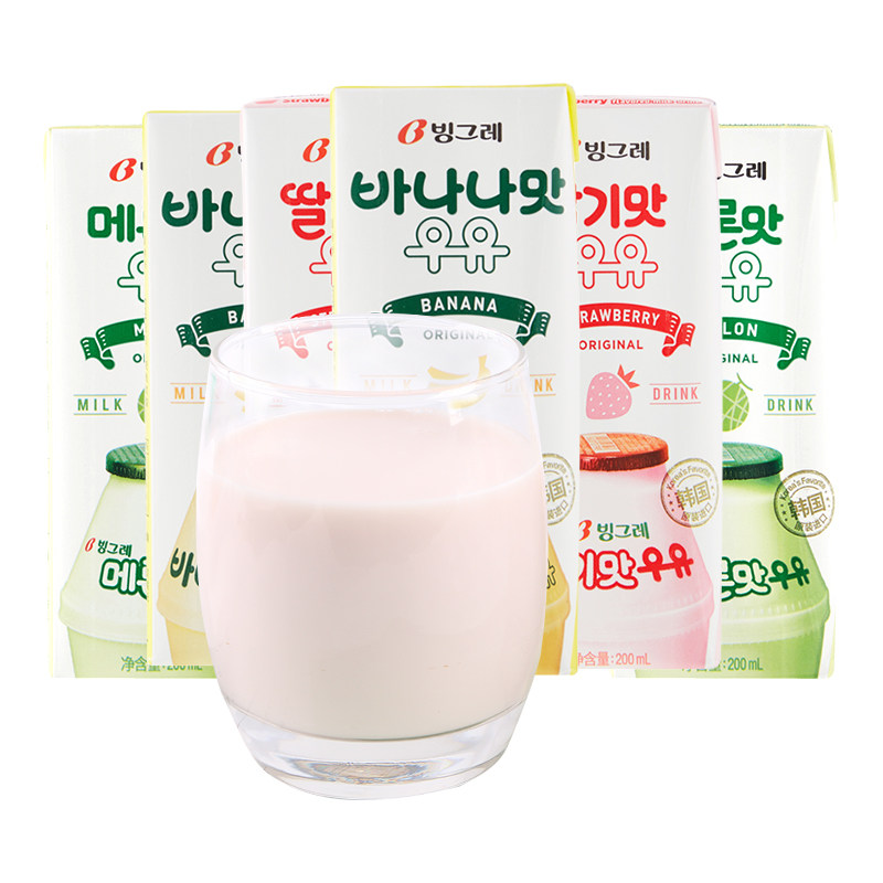 Binggrae корейский Imported Bingray Milk Banana Strawberry Milk Drink Мульти-ароматизированное смешанное молоко для завтрака