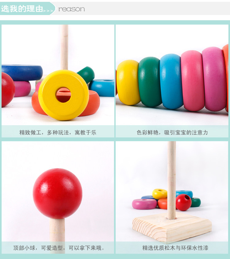 Деревянная головоломка цветная Rainbow Case Tower. детские Набор слоев Кольцо Toy Set Column на младенца 1-3 года