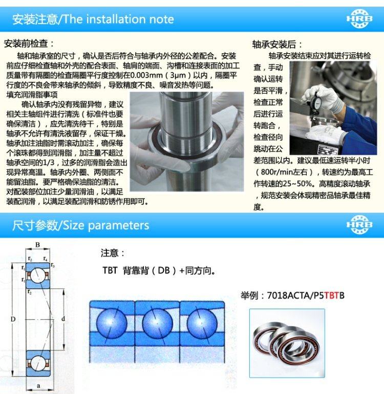 HRB 7215 ACTA P5TBTB Угловой контактный шар Precision подшипник Triple Match