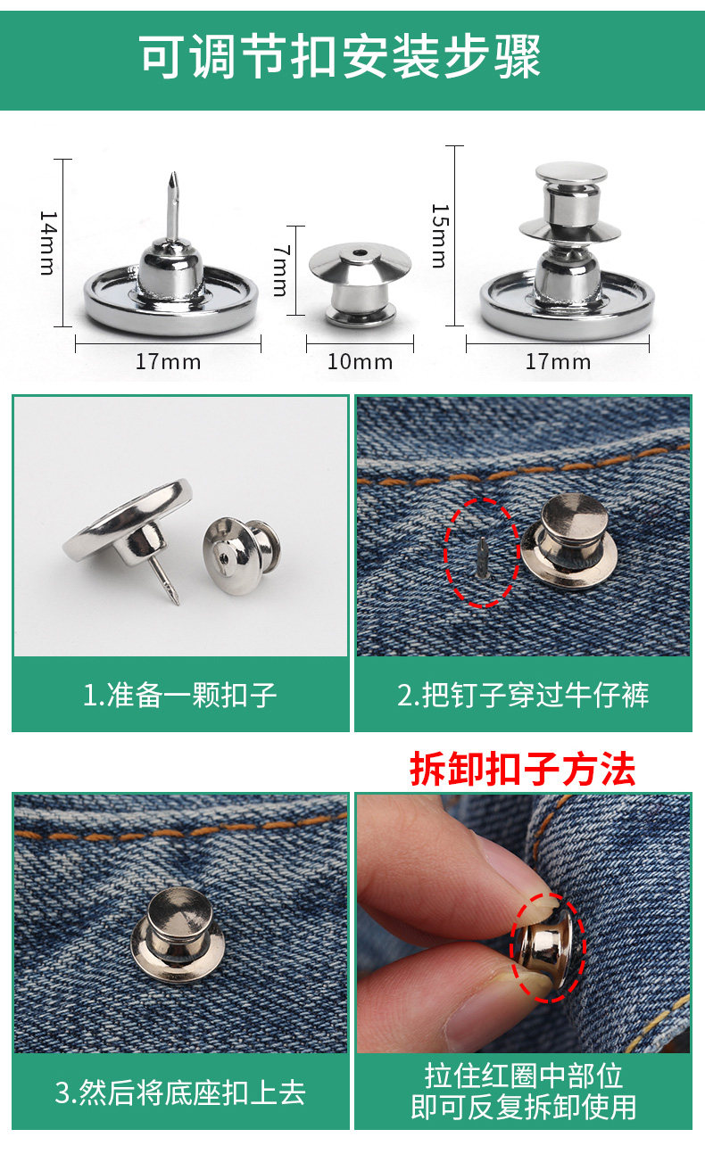 Штаны с застежкой Детский крючок с застежкой Кольцевые детали с застежкой Аксессуар регулируемый замок с застежкой Слинг-карта с застежкой верх из джинсы Кнопка с застежкой