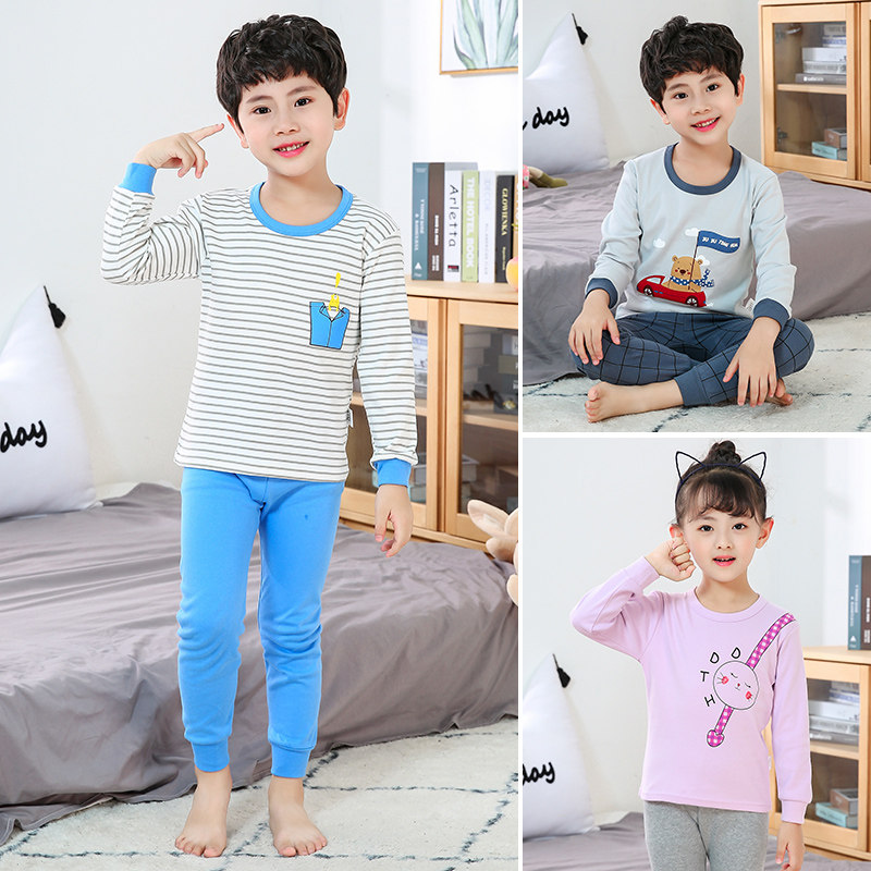 Детские удерживающий тепло нижнее белье комплект чистый хлопок детские Осенняя одежда на мальчика на девочку длинный рукав удерживающий тепло Ребенок полностью хлопок пижама