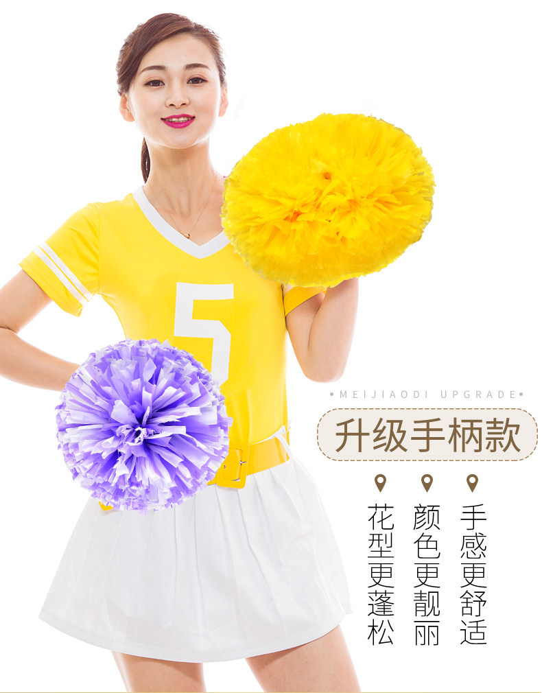 Чирлидер с цветами в руках, чирлидерши и ученики начальной школы танцуют цвет Игры с мячом ручные цветы