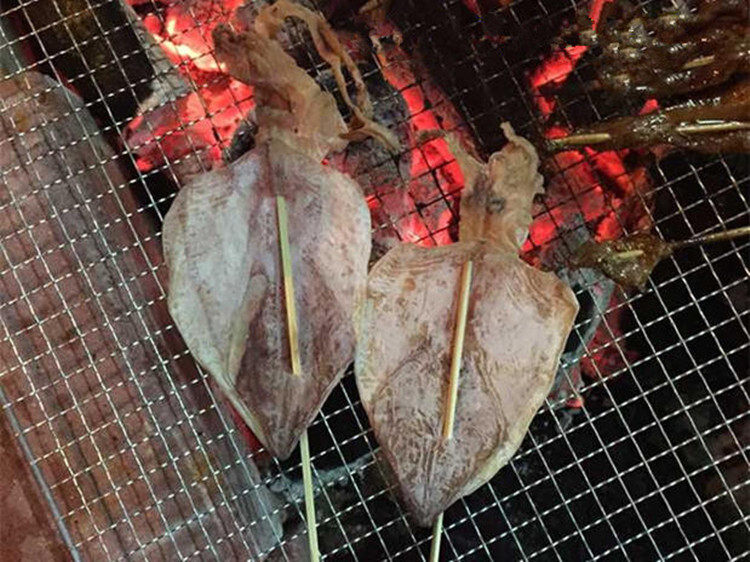 2, барбекю: на гриле кальмара также одинаково! Squid сухой, чтобы выпечить на микро-желтый .. низ Вино вина ~
