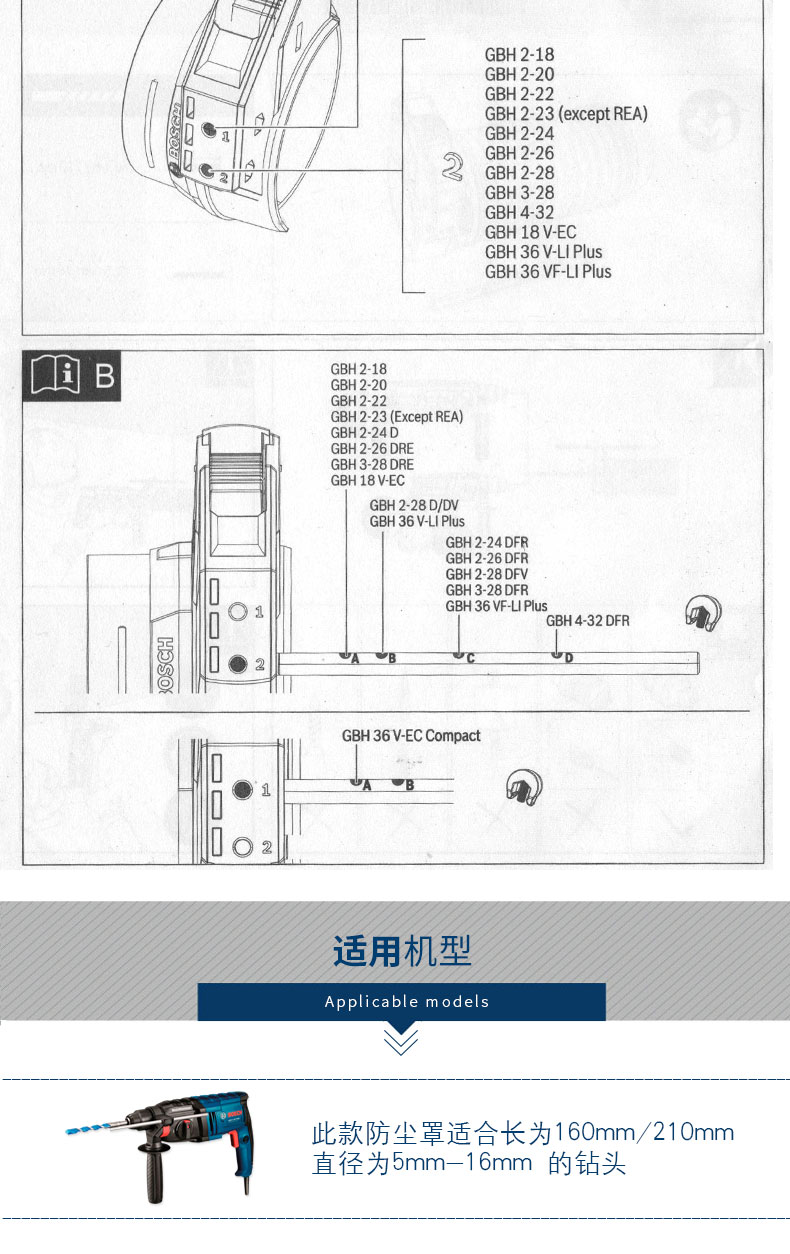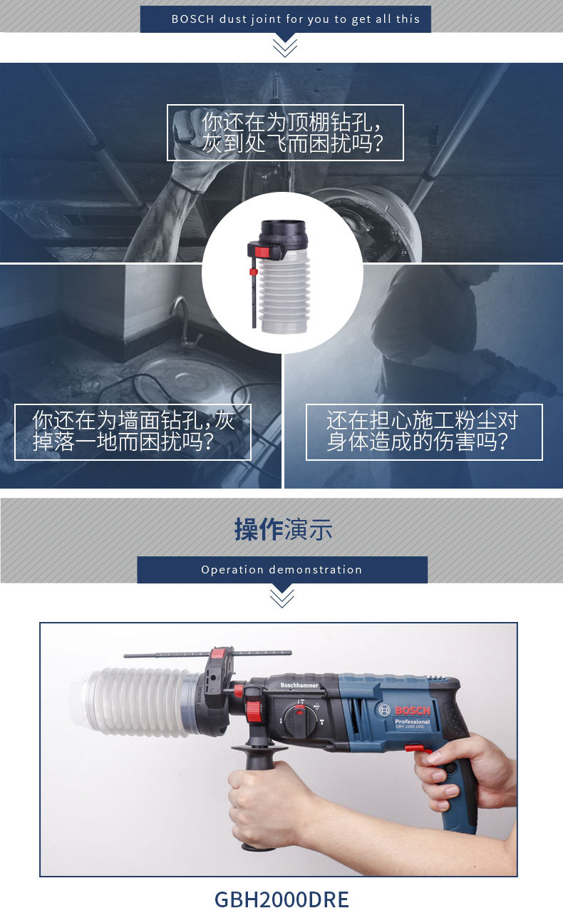 Электрическая перфораторная дрель Bosch GBH2-20DRE с защитой от пыли накладка Сбор пыли накладка Пылезащищенный соединитель и интеграция зольника накладка