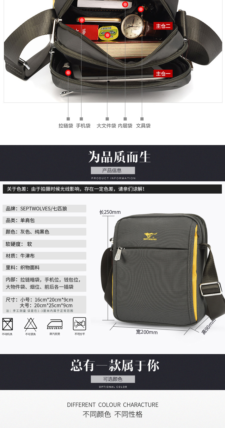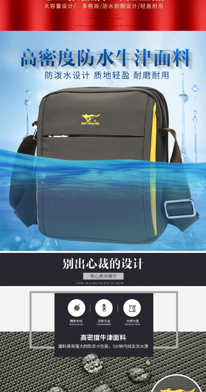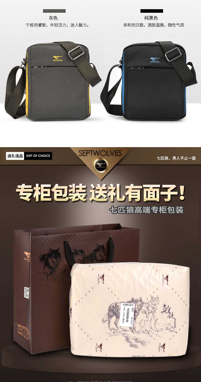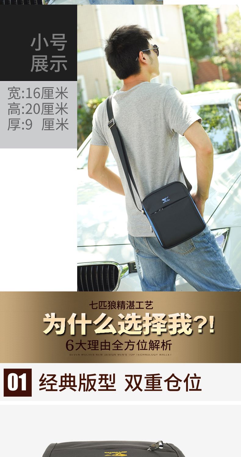 7 Волк мужской пакет один плечо пакет Спортивный маленький изобилок пакет корейская версия мужской пакет пакет холст пакет для отдыха Оксфордская ткань пакет