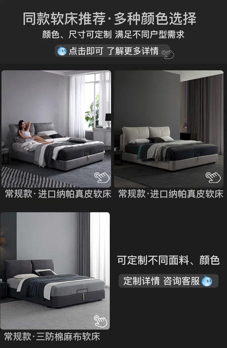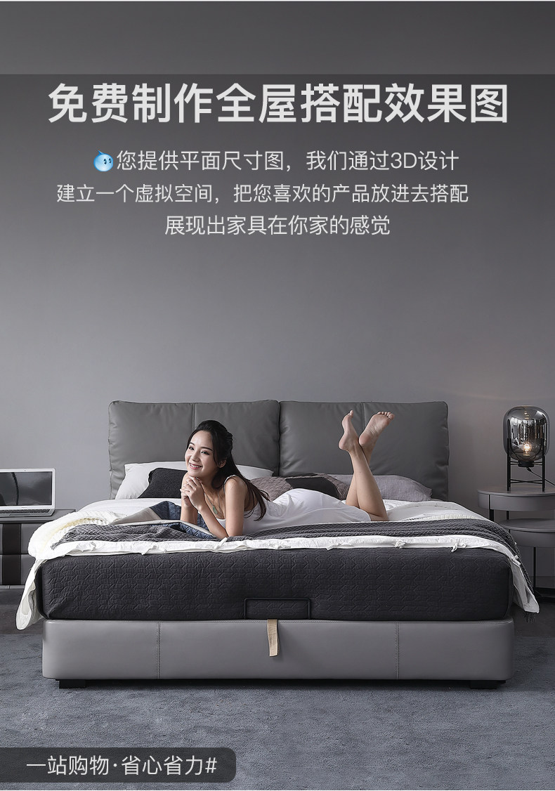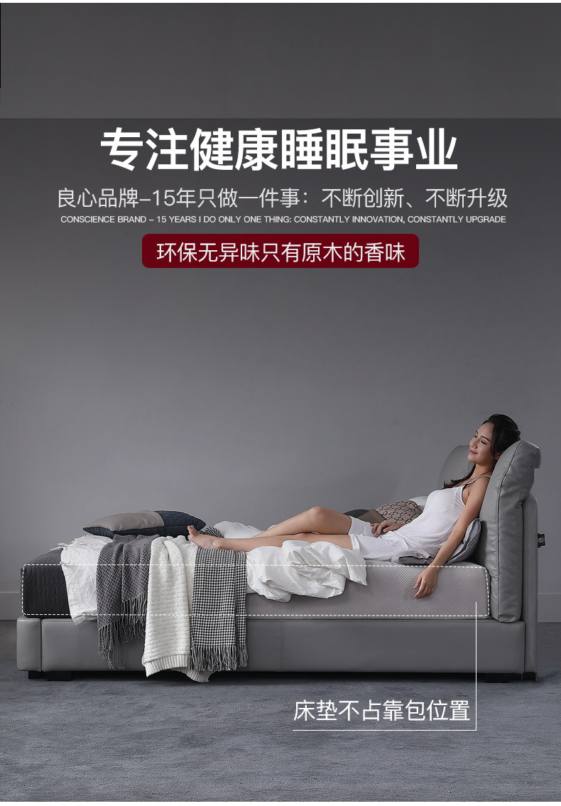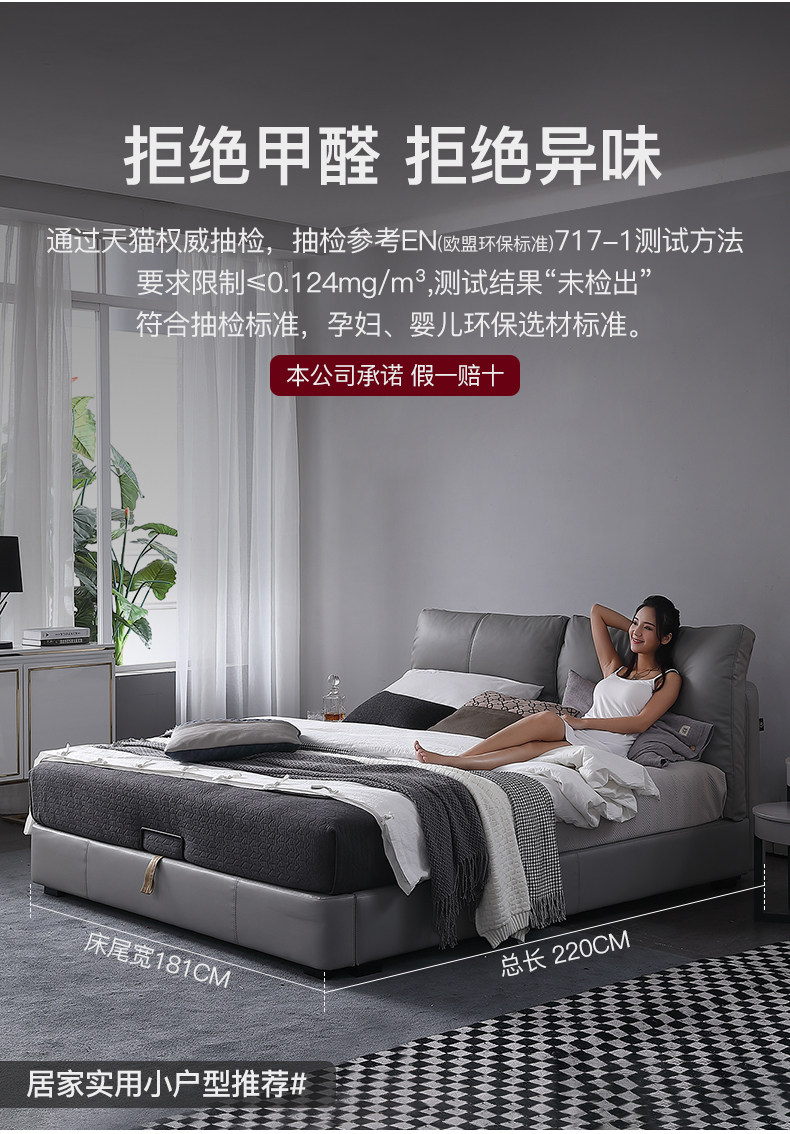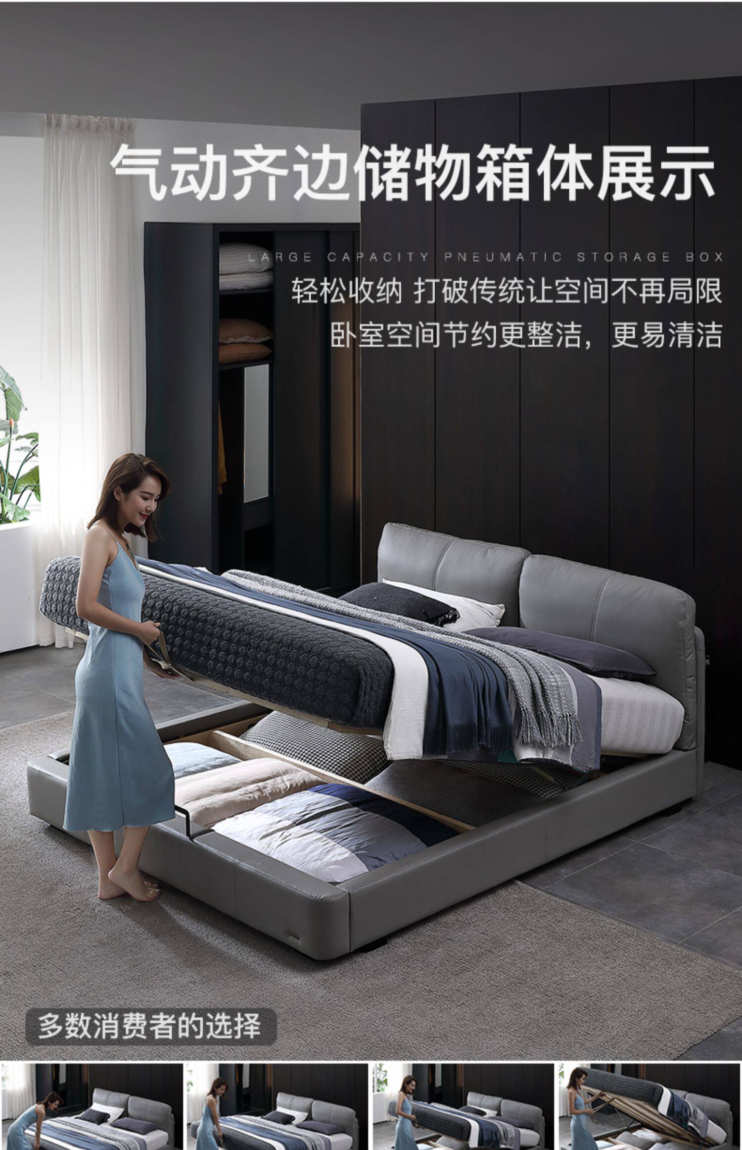 Кожаная кровать из натуральной кожи Кровать Nordic поколение Простое хранение мягкое пакет Легкая роскошная атмосфера 1.8M спальня двойная свадьба кровать