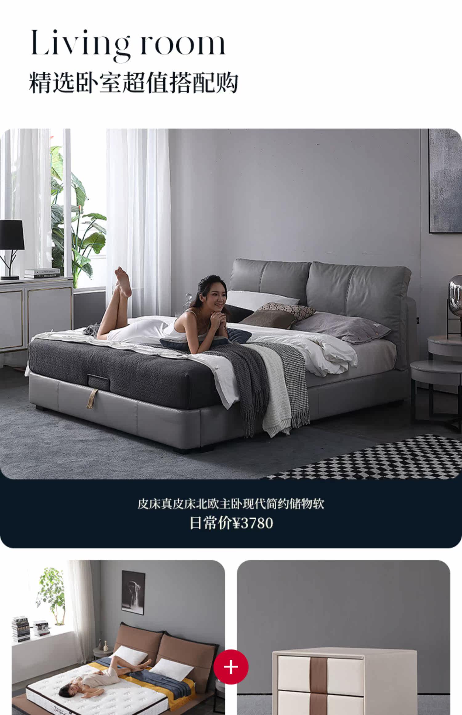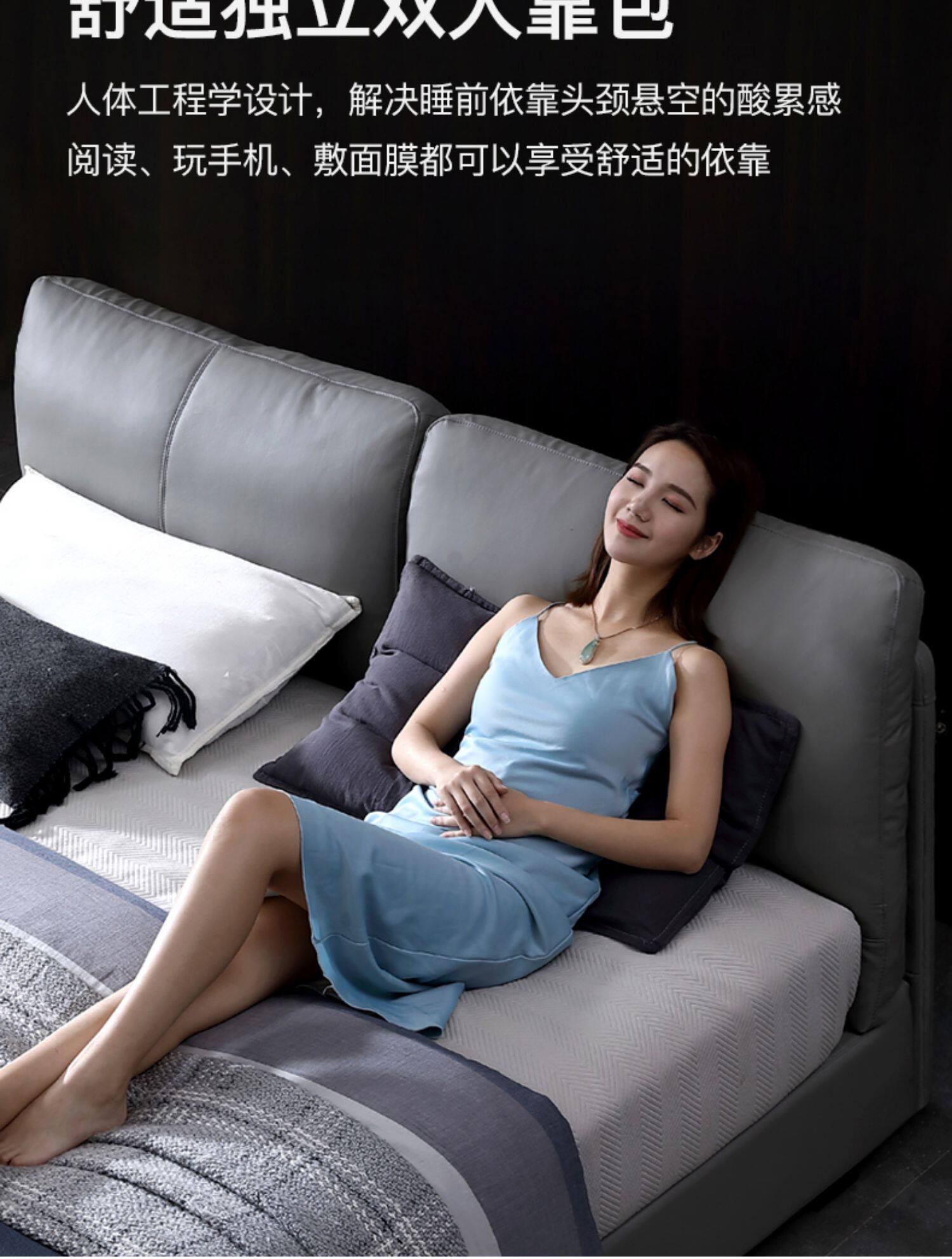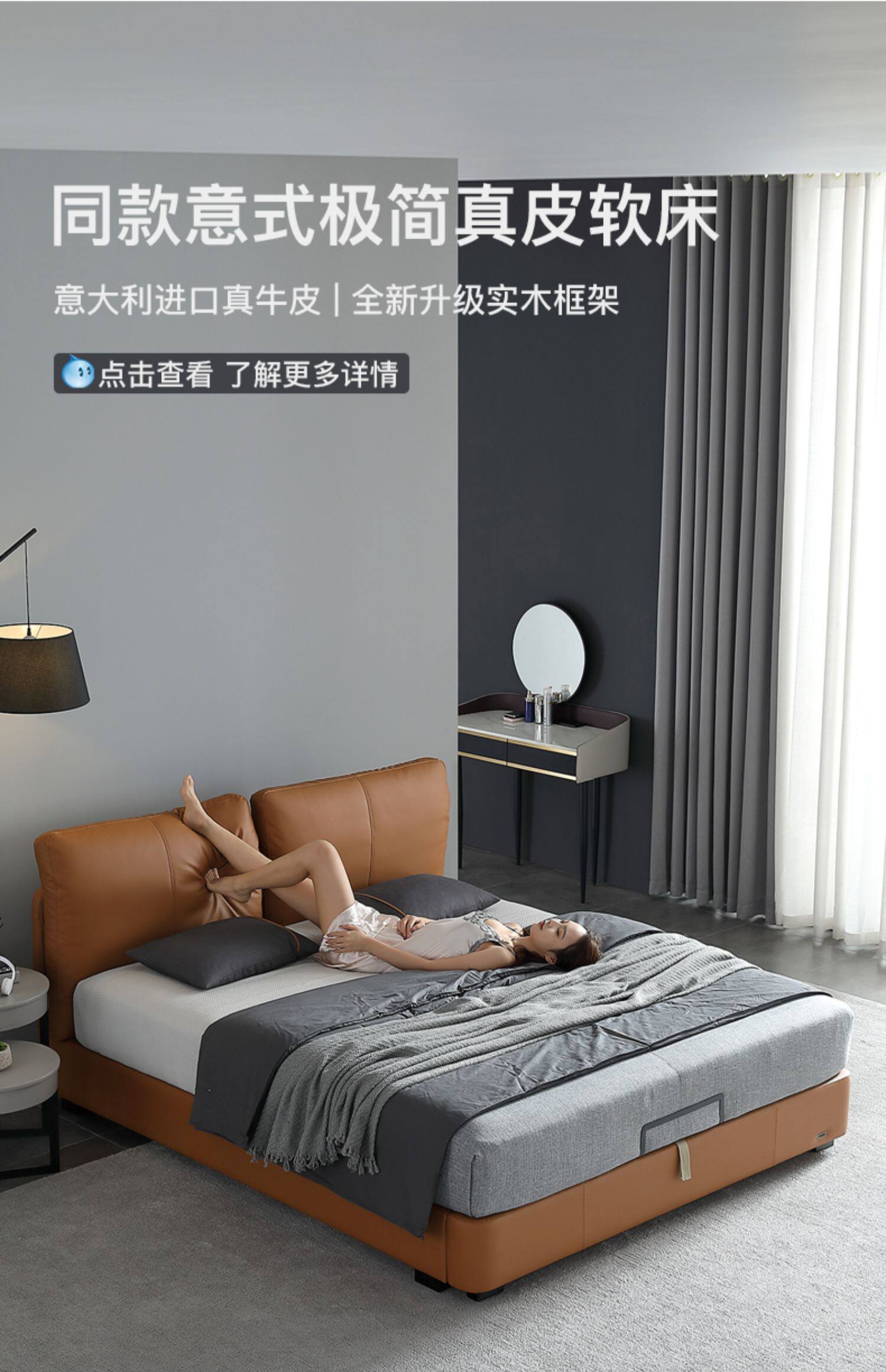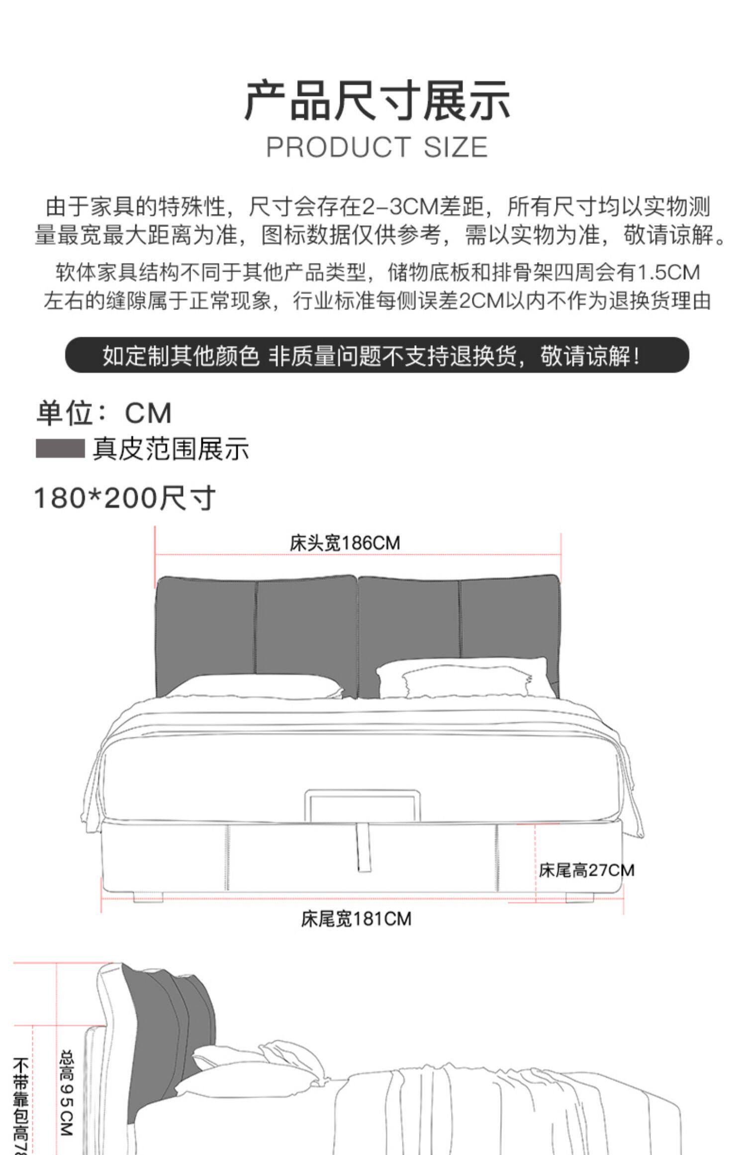 Кожаная кровать из натуральной кожи Кровать Nordic поколение Простое хранение мягкое пакет Легкая роскошная атмосфера 1.8M спальня двойная свадьба кровать