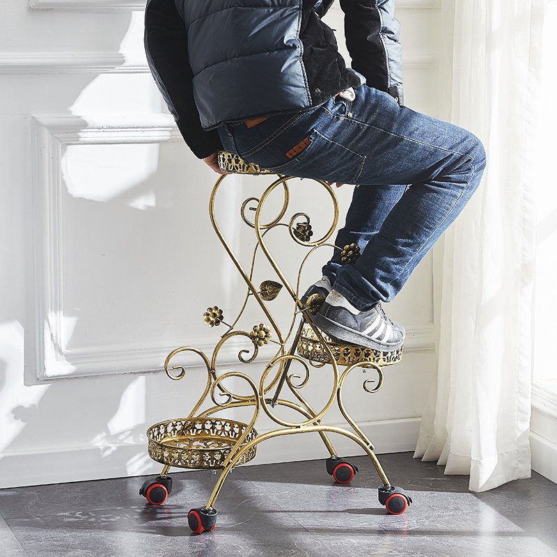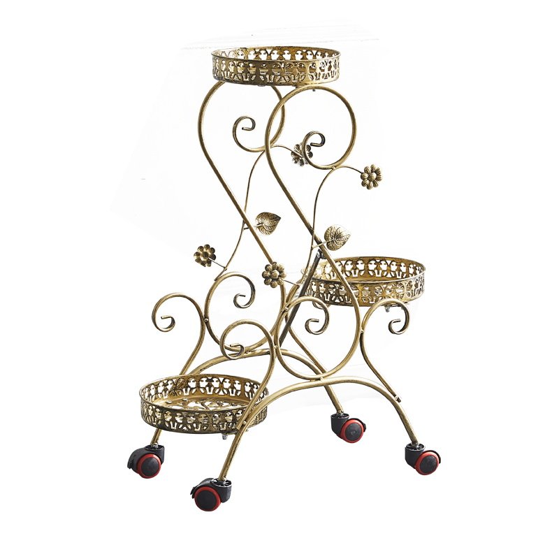 Подставка для цветов из кованого железа многослойная двухслойная мобильная подставка для цветов на колесиках гостиная подставка для цветочного горшка напольная зеленая редька подвесная полка для орхидей
