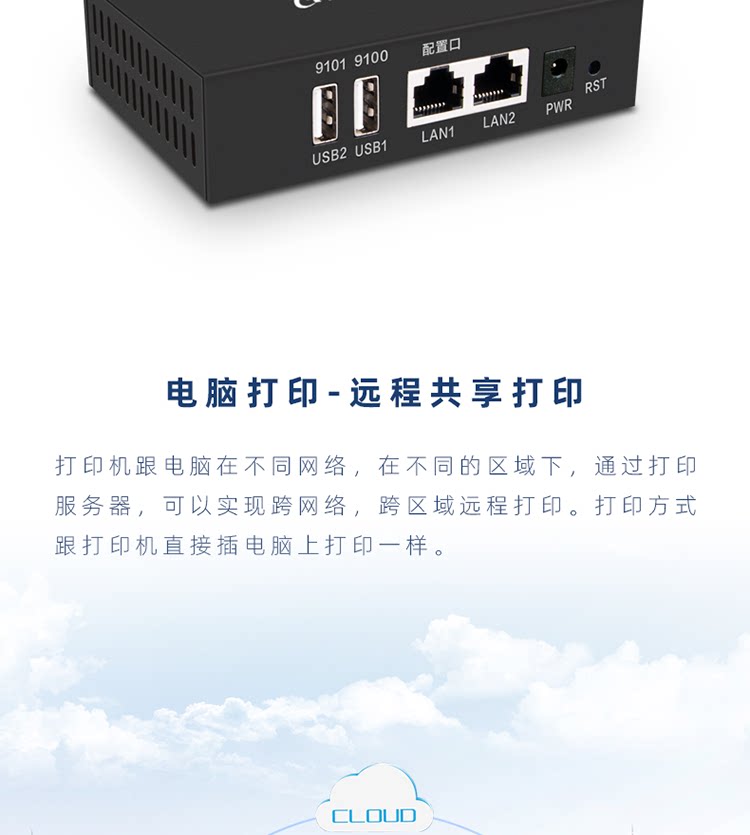 Dual USB Port Print Server поддерживает два сетевых принтера Sharing Remote Print Mobile Print Cloud Box