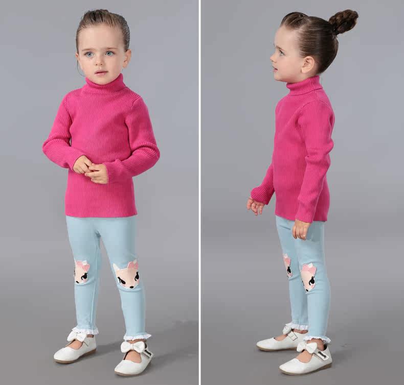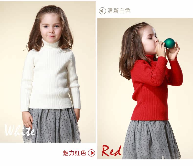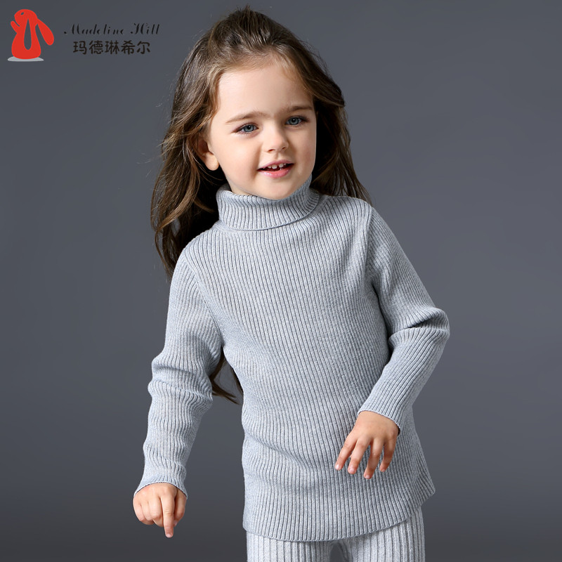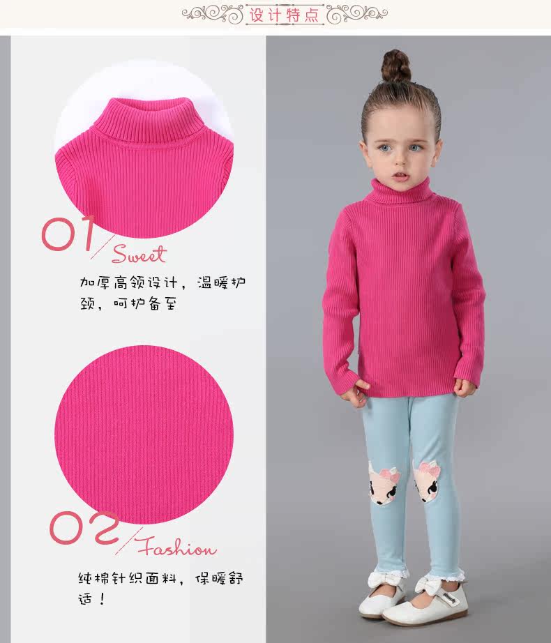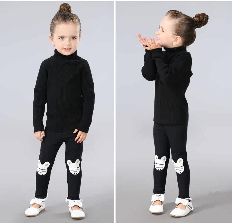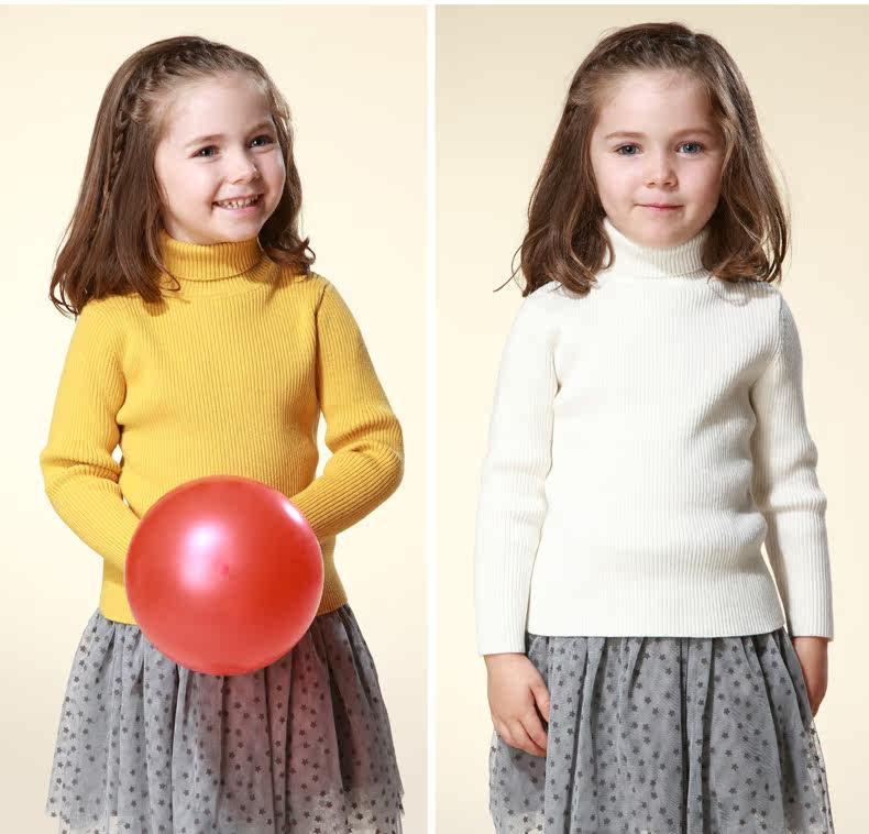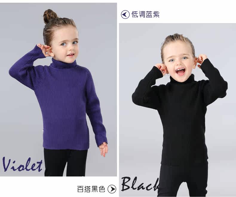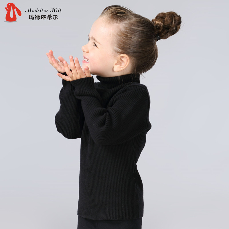 На девочку черный Свитер детские удерживающий тепло трикотажный Яркая рубашка детские высокая воротник белый чистый хлопок утепленный зима распродажа