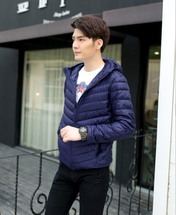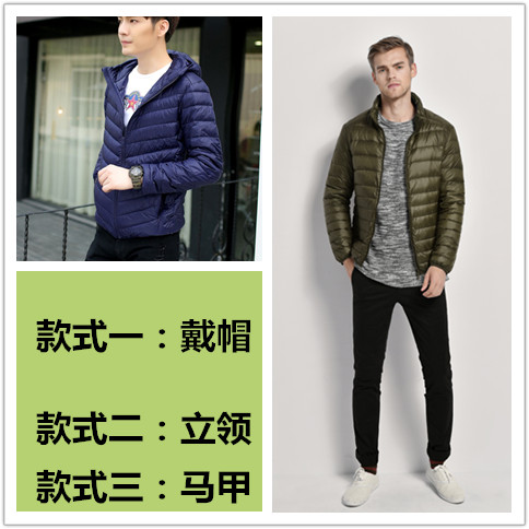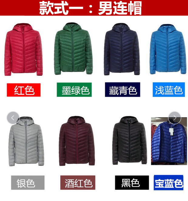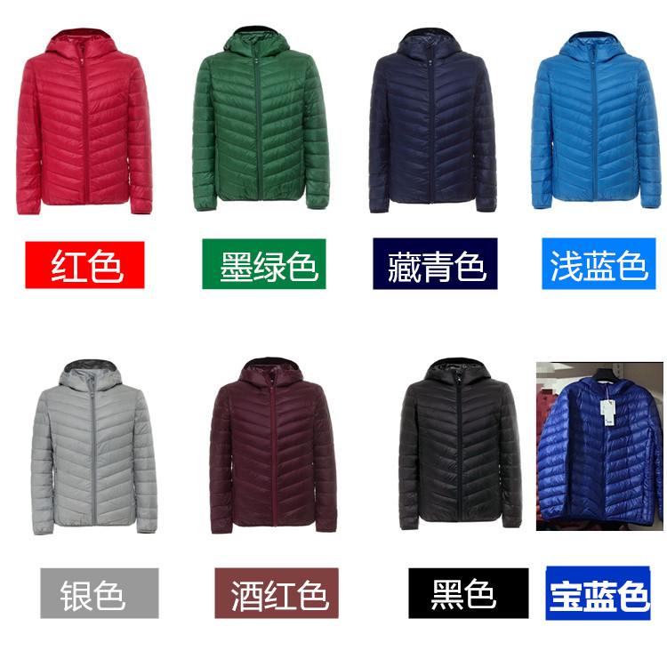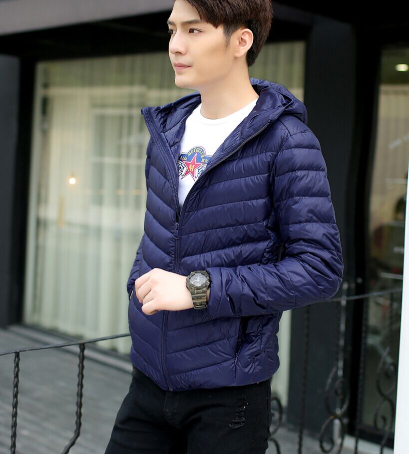 Зима супер тонкий пуховик мужской короткий капюшон Очень тонкий стиль Свет плюс удобрения плюс большой размер Свет большой размер Средних лет