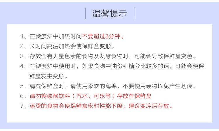 Кроме того, эксперты напоминают, используют ящики хранения холодильника имеет Несколько мер предосторожности: 1. Возьмите консервацию в морозильной камере, не лошади верх Открыть, положите его при комнатной температуре 1—Открыть снова через 2 минуты. 2. При использовании его в микроволновке, если еда содержит Объем масла и содержит Если сахар больше, температура быстрая. верх Обстоятельства низ Это будет деформировать пластиковую кассету. Итак, отопление верх Еда, лучше всего использовать микроволновую печь для коробка. 3. Пузырьки газированного (сода, колы и т. Д.). Потерят герметизирующую способность консервационной кассеты, пузырьковой пищи или ферментированной пищи, горячей пищи и т. Д. Сделают герметизирующие характеристики хранения низ уронить, пожалуйста Старайтесь избегать хранения такой еды в пластиковой коробке. 4. Разное время сохранения пищи имеет Разные, нет один Положитесь на уплотнительную способность свежей коробки, чтобы есть как можно скорее.