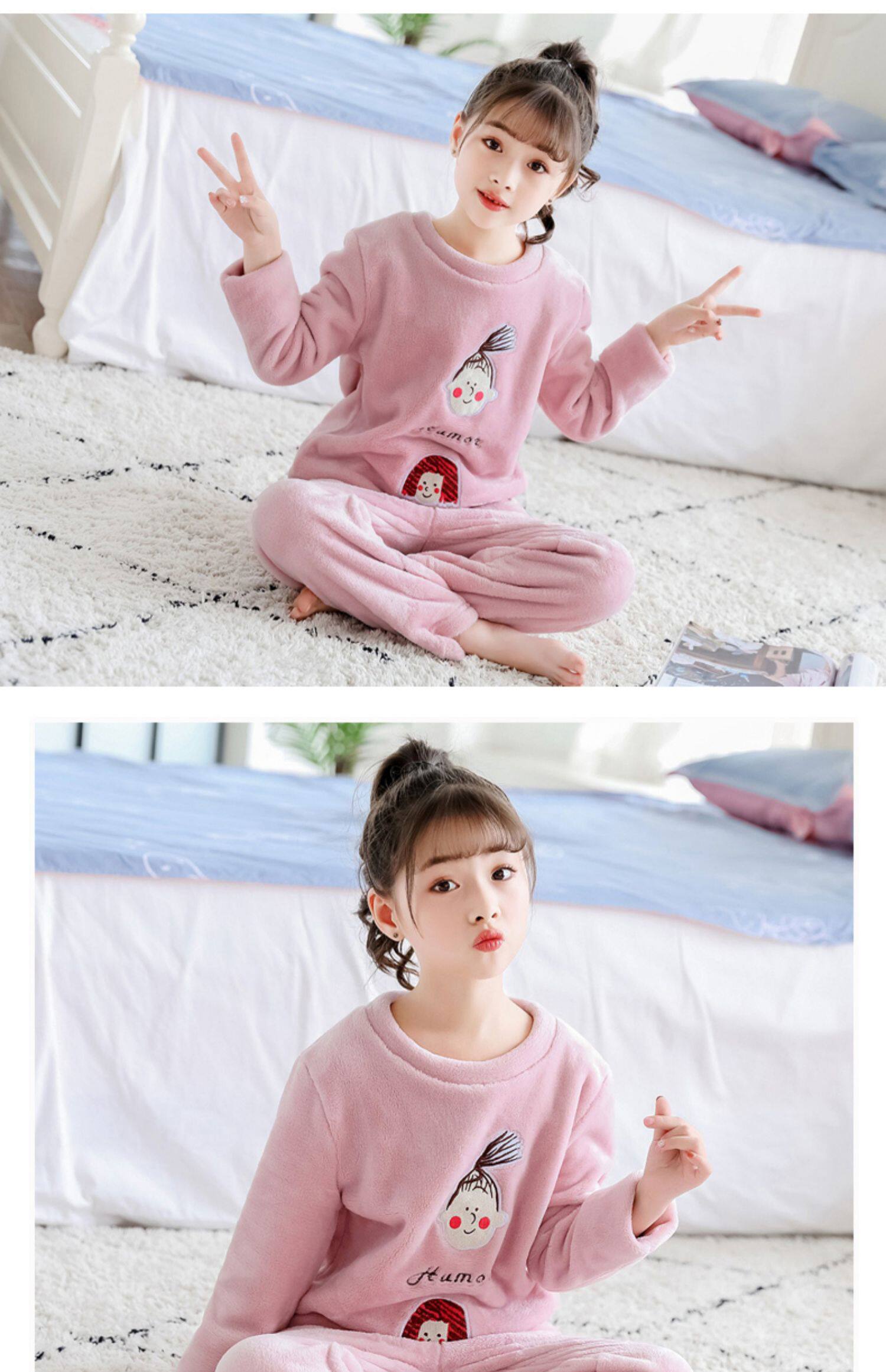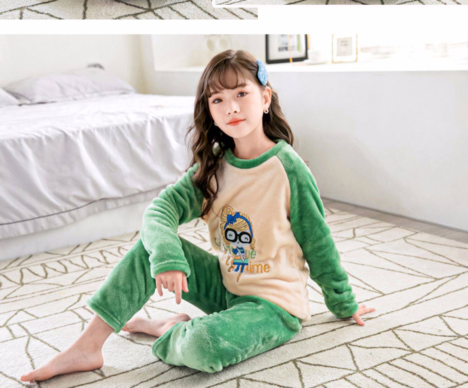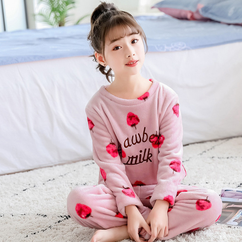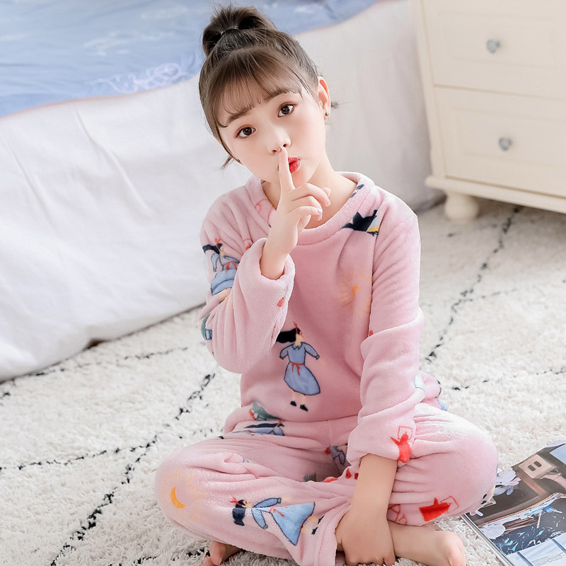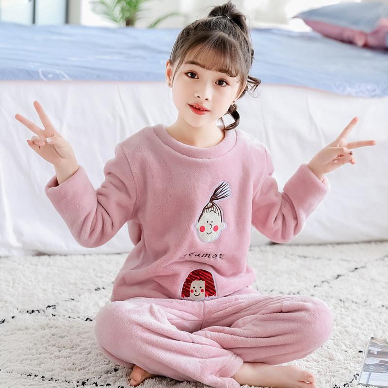 На девочку осень-зима детские Coral Velvet Girl Home Service детские Фланель малыш утепленный стиль пижама комплект зимний