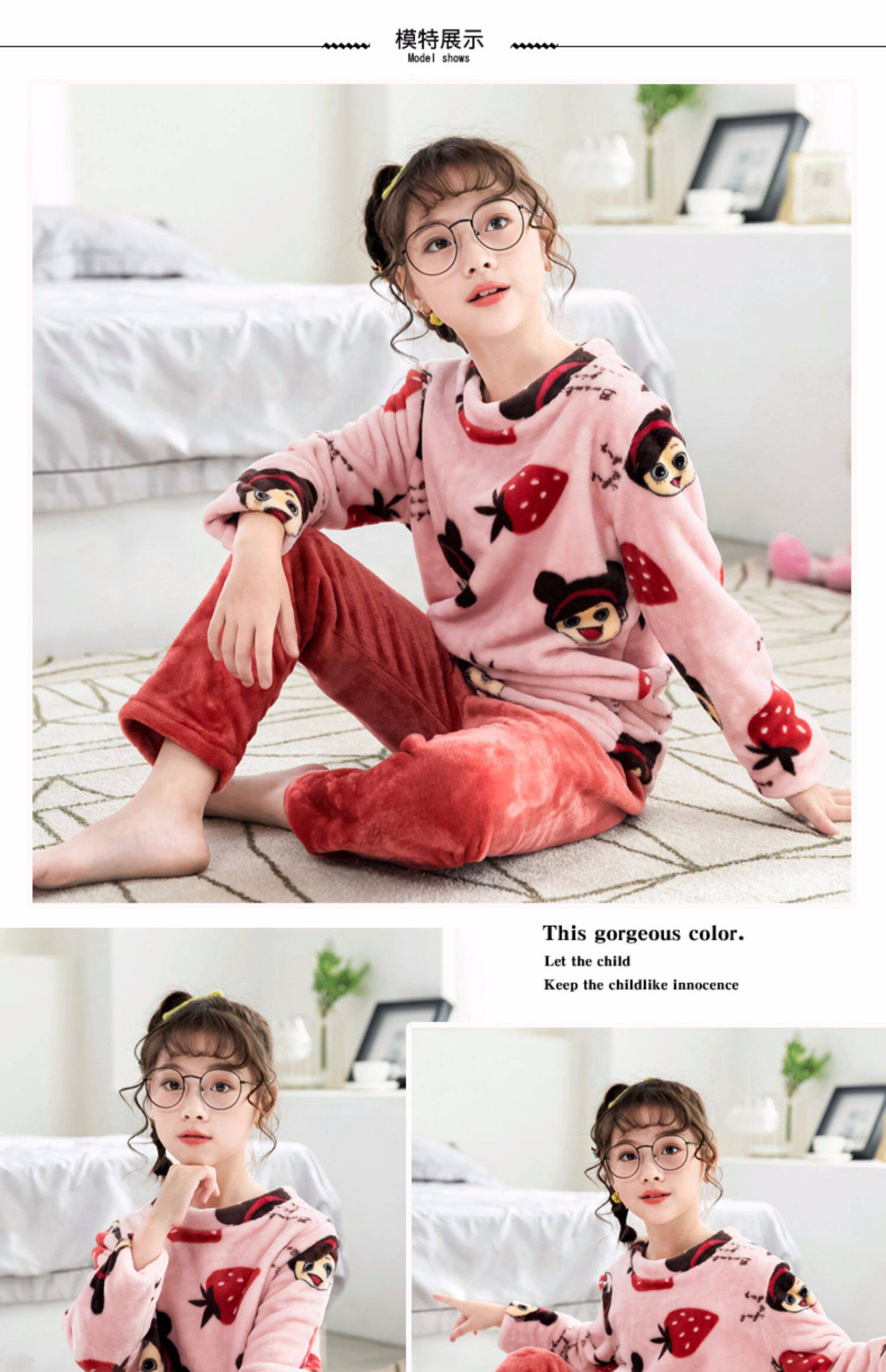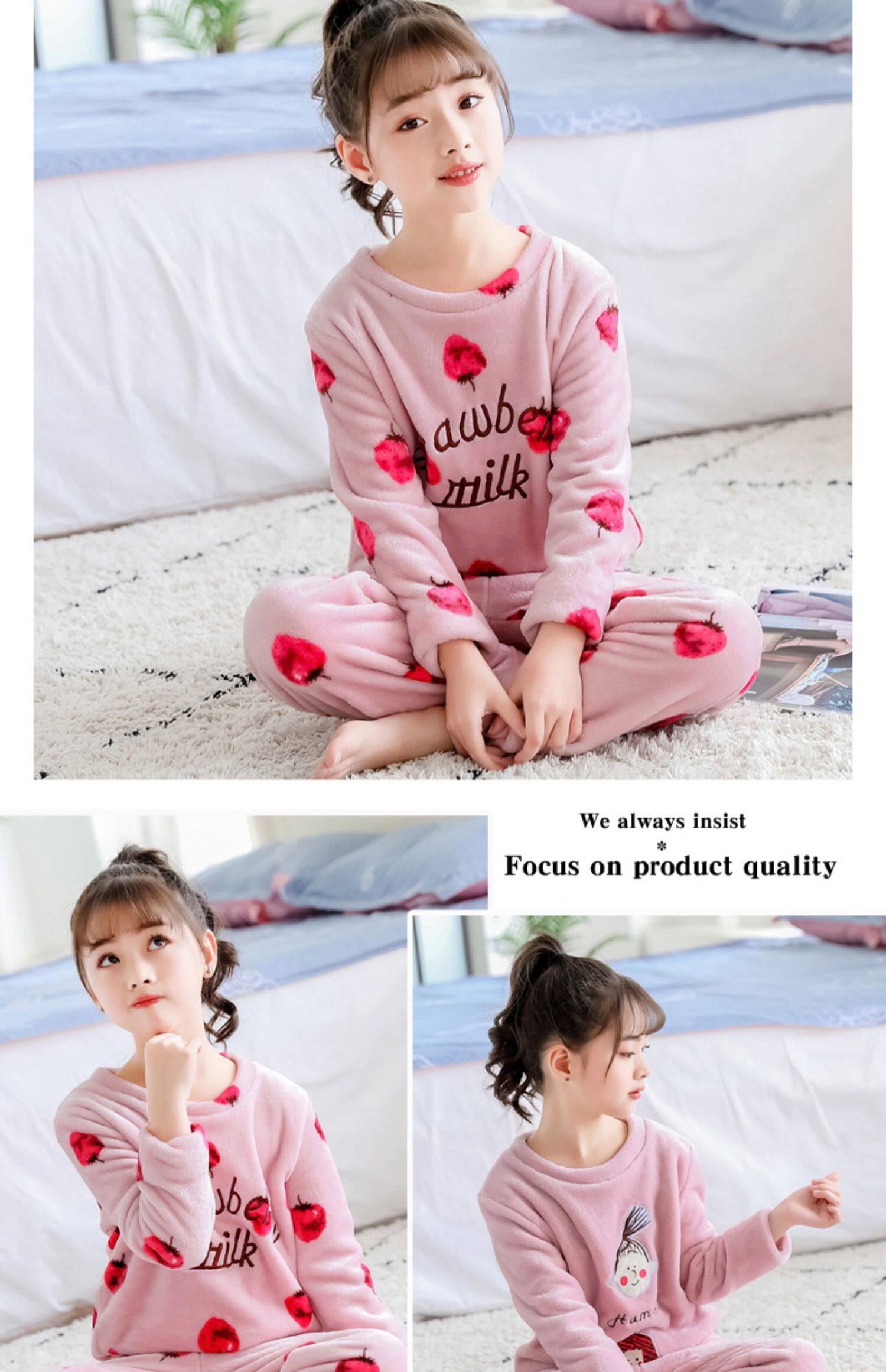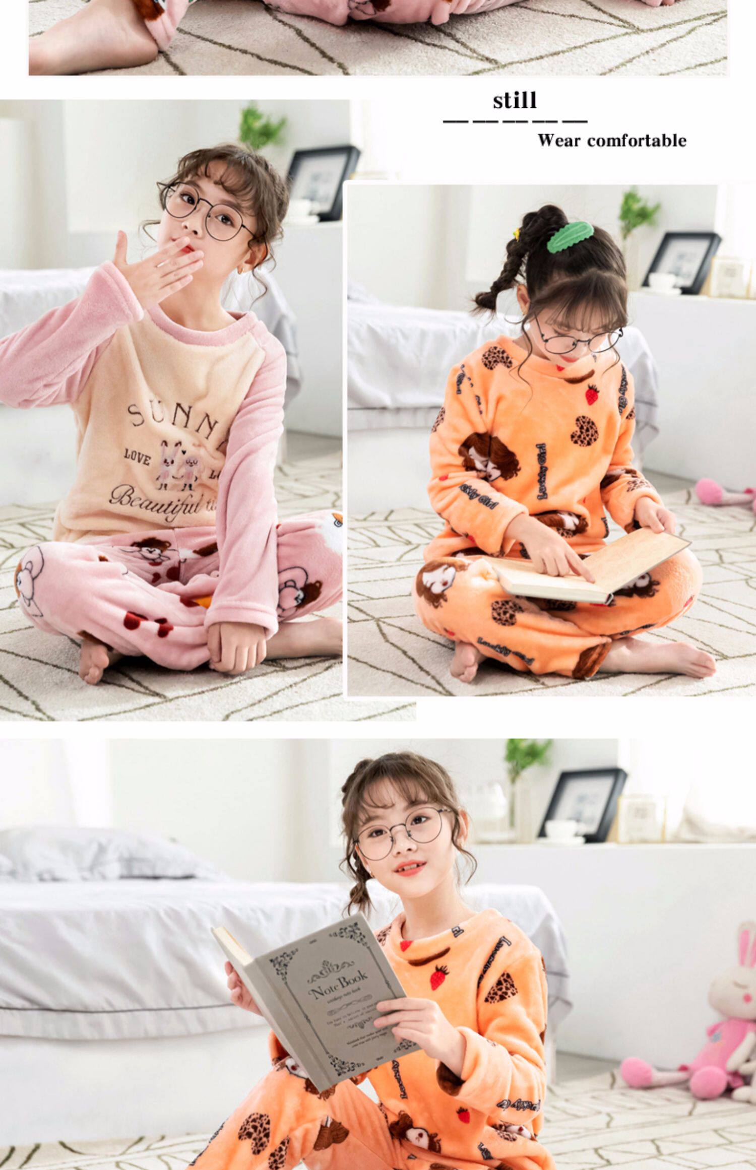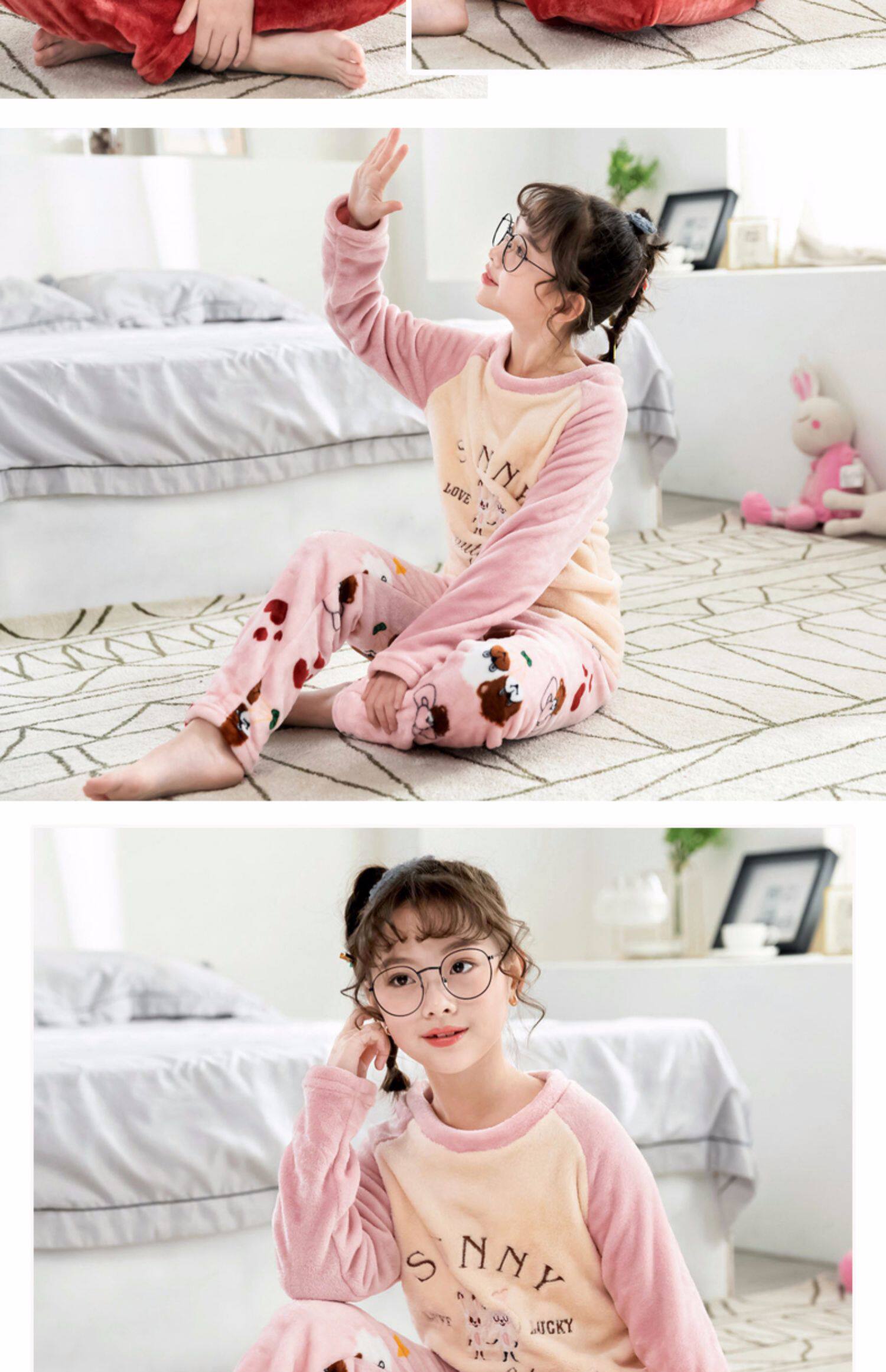 На девочку осень-зима детские Coral Velvet Girl Home Service детские Фланель малыш утепленный стиль пижама комплект зимний
