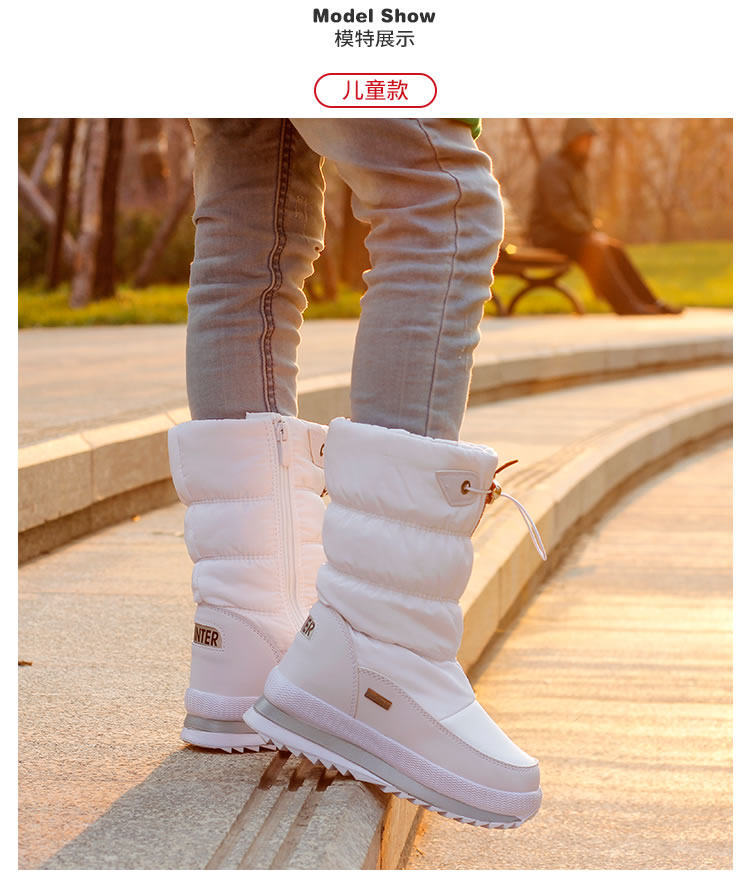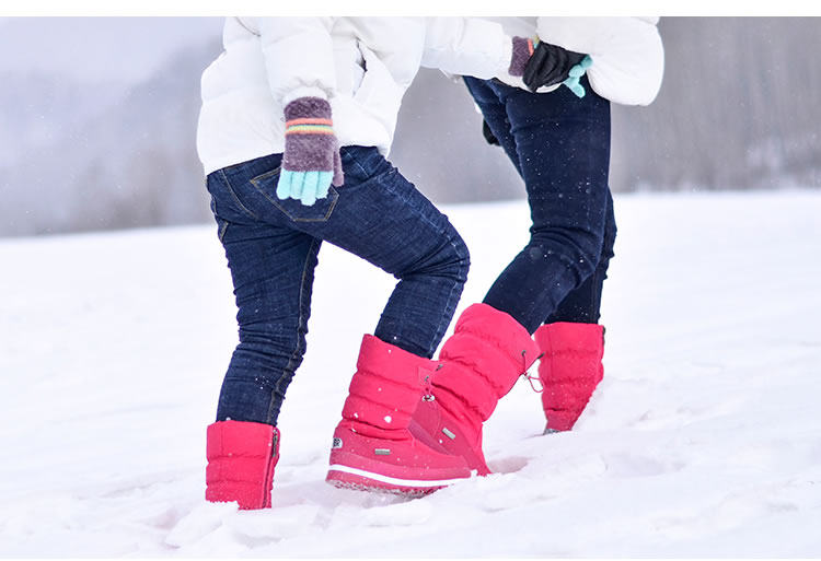 Зимний детские хлопок сапоги водонепроницаемый нескользящие удерживающий тепло угги на девочку средние замшевый утепленный Снежная обувь на мальчика обувь
