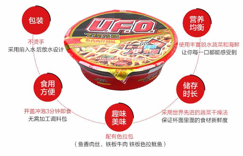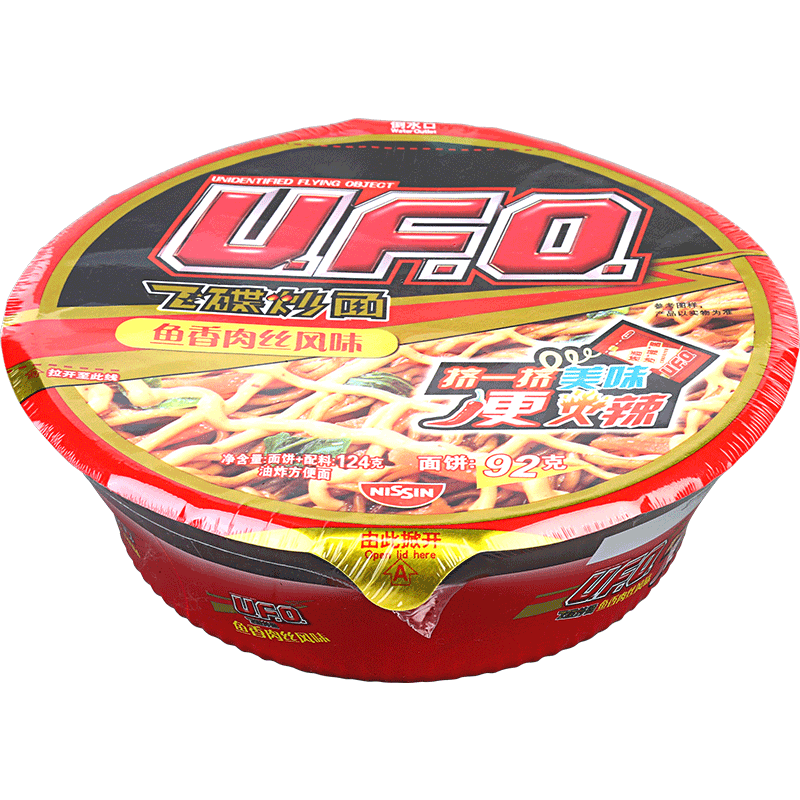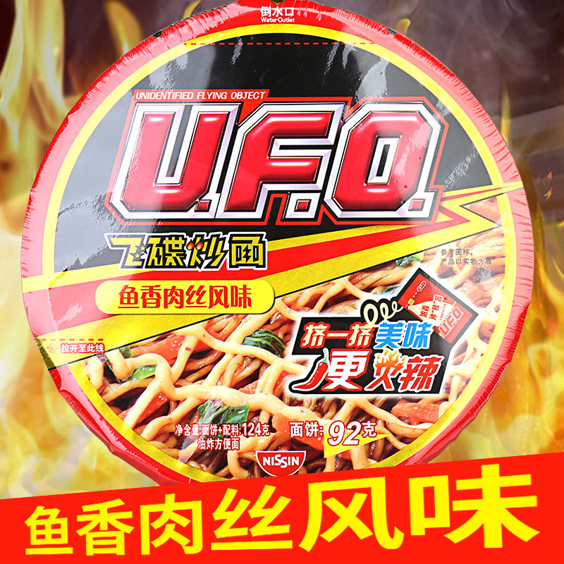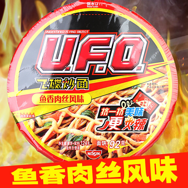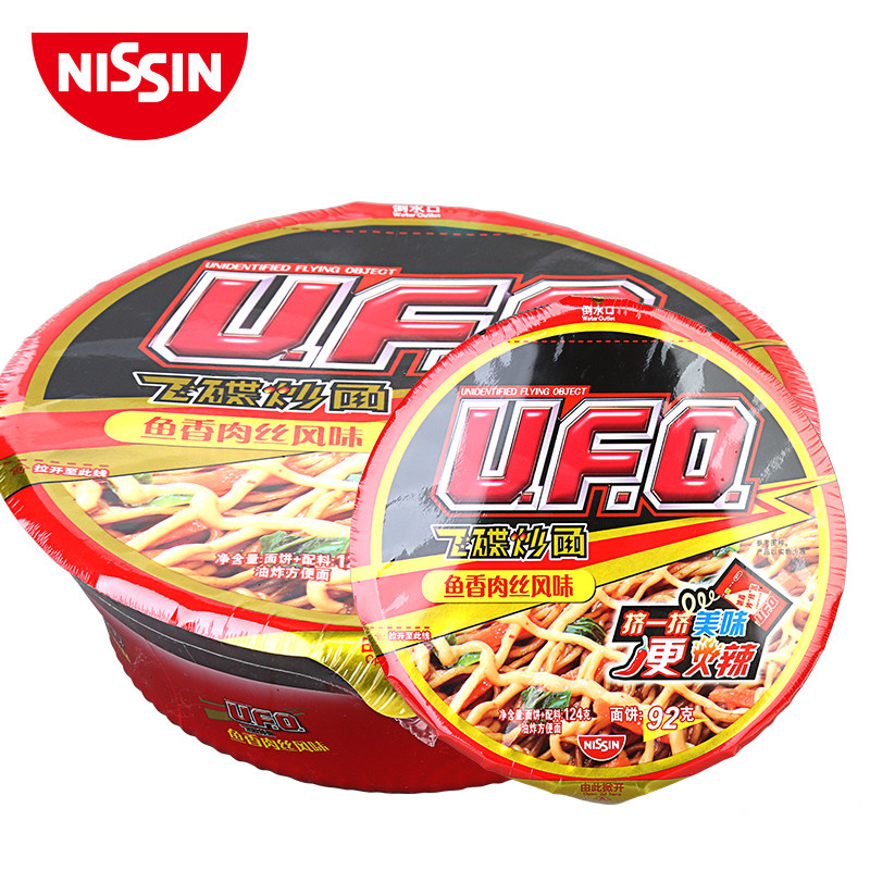 Niki Ufo мгновенный пузырь лапша летающая тарелка жареная лапша сухой лапшой жареный соус рыб аромат шелкованный 124 г / чаша поверхность