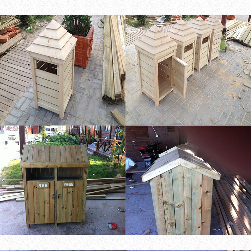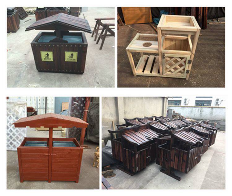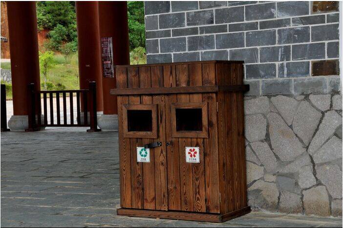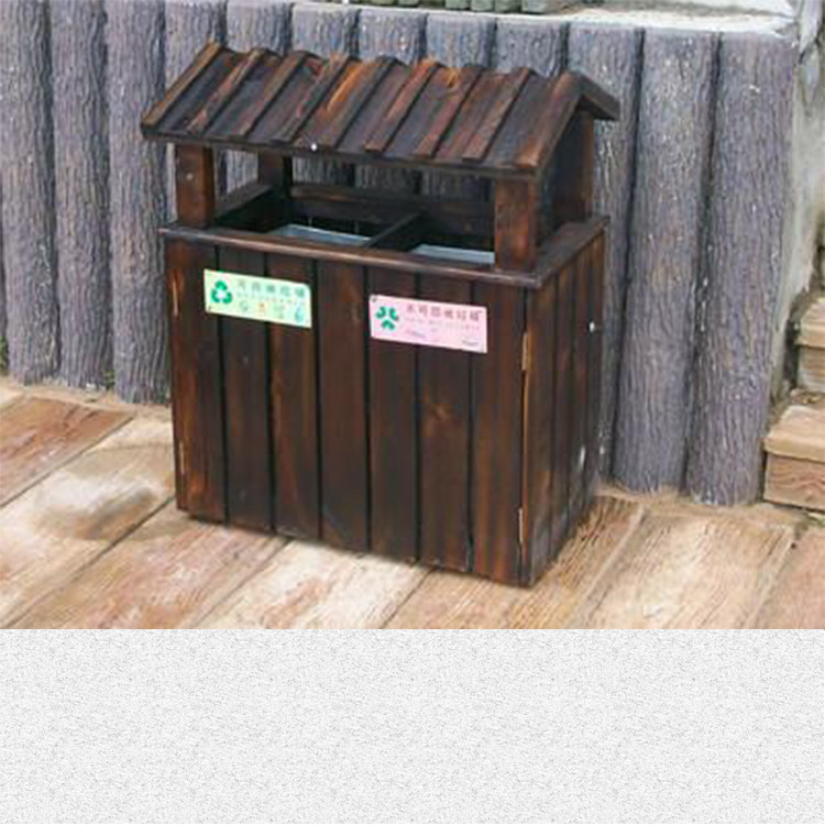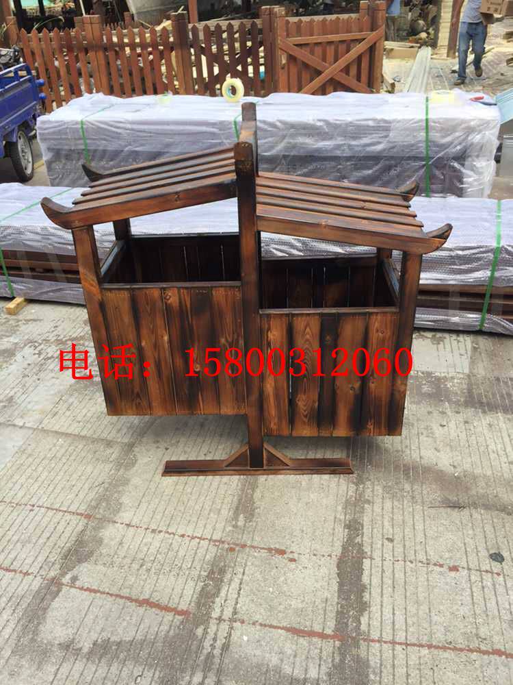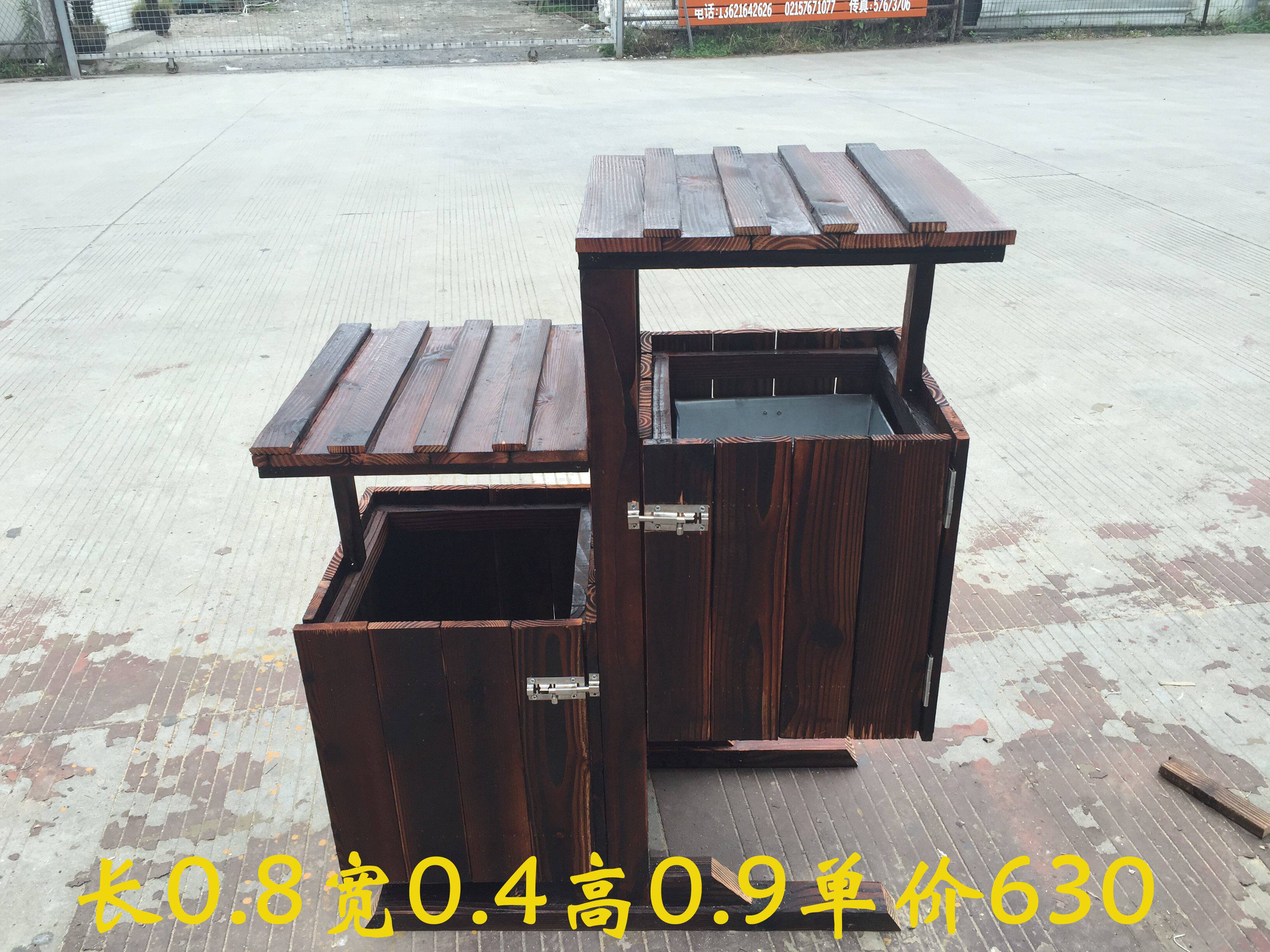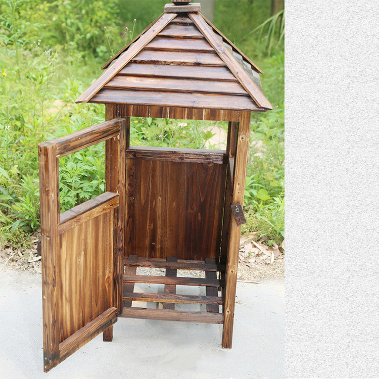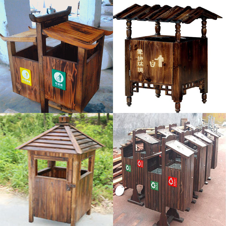 Открытый антикоррозийный деревянный мусорный бак Мусорное ведро для дома Мусорное ведро из карбонизированного дерева Живописная местность Мусорное ведро из массива дерева