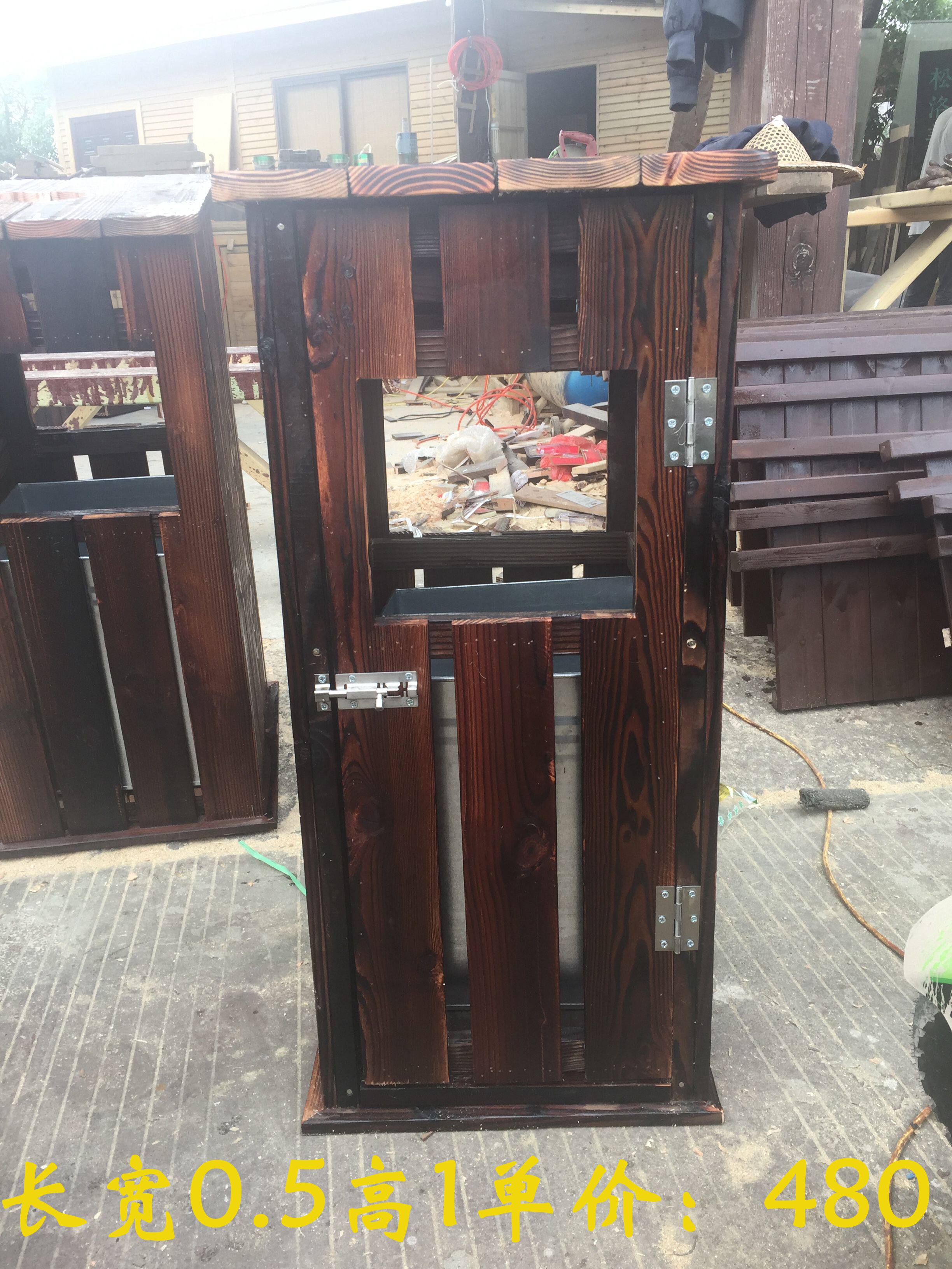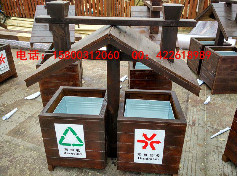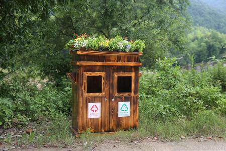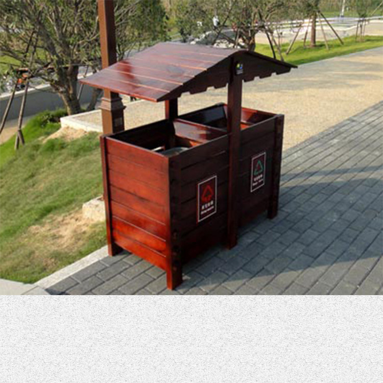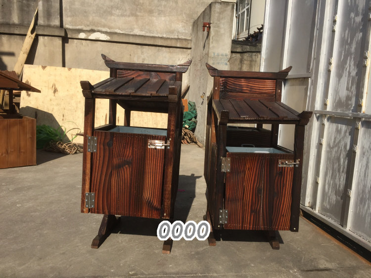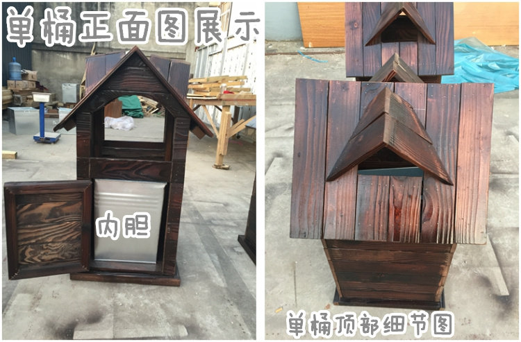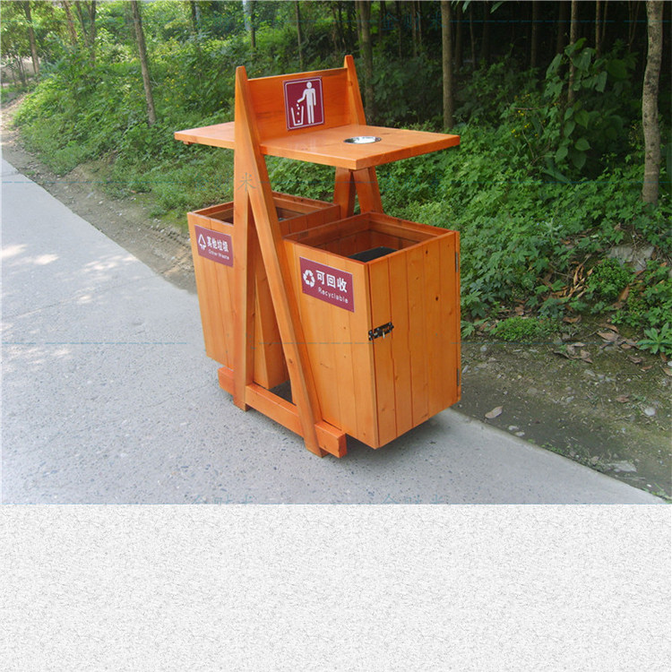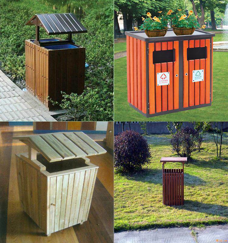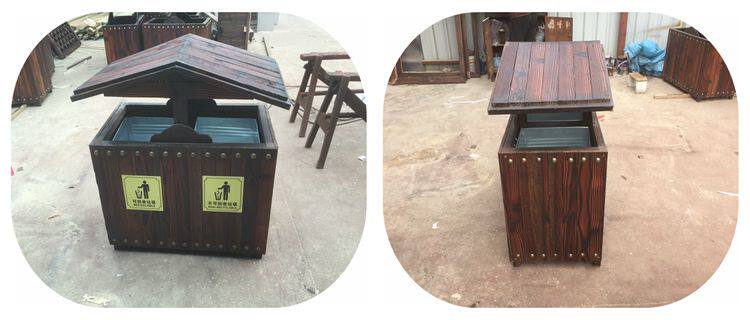 Открытый антикоррозийный деревянный мусорный бак Мусорное ведро для дома Мусорное ведро из карбонизированного дерева Живописная местность Мусорное ведро из массива дерева