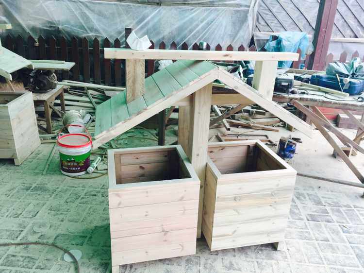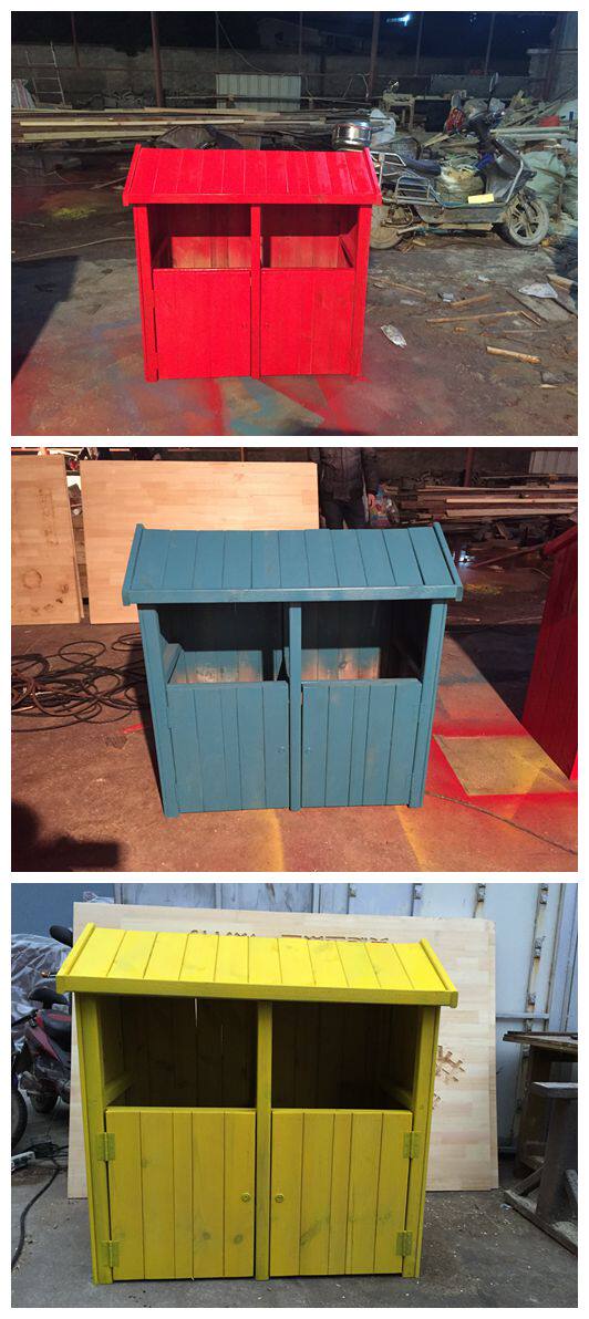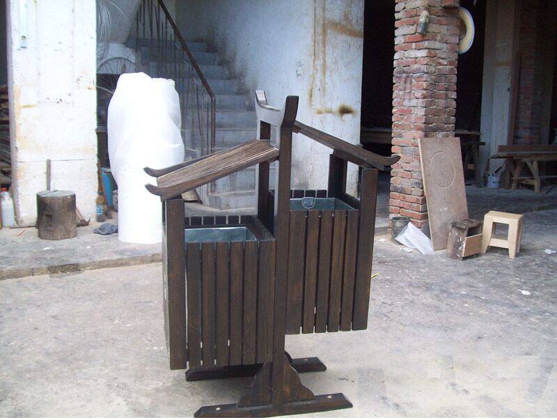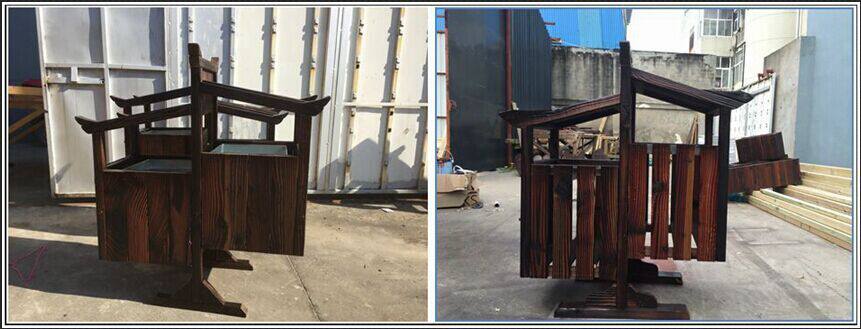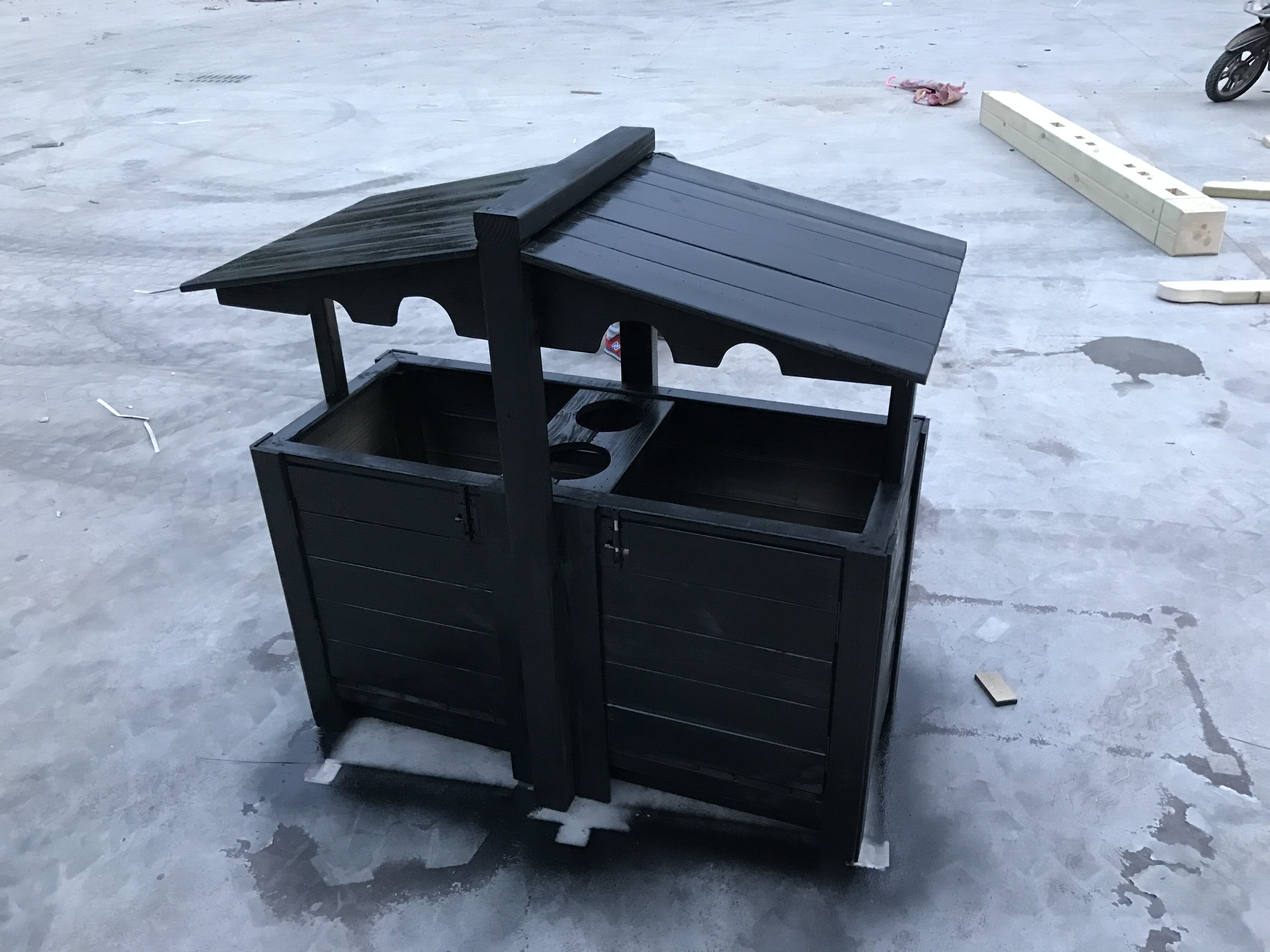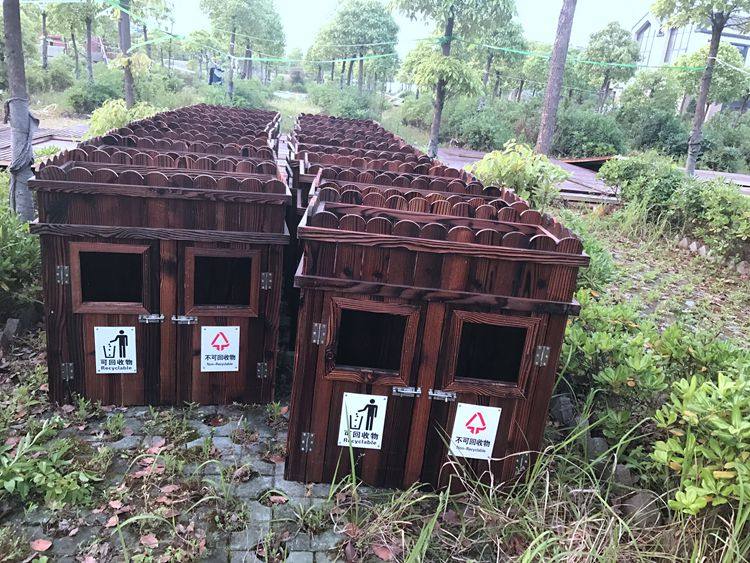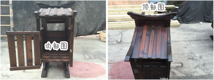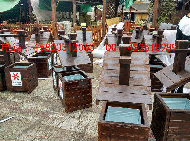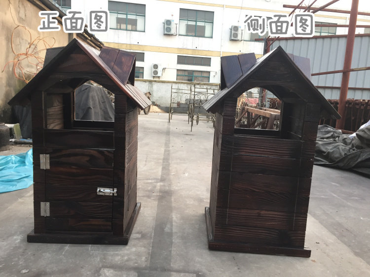 Открытый антикоррозийный деревянный мусорный бак Мусорное ведро для дома Мусорное ведро из карбонизированного дерева Живописная местность Мусорное ведро из массива дерева
