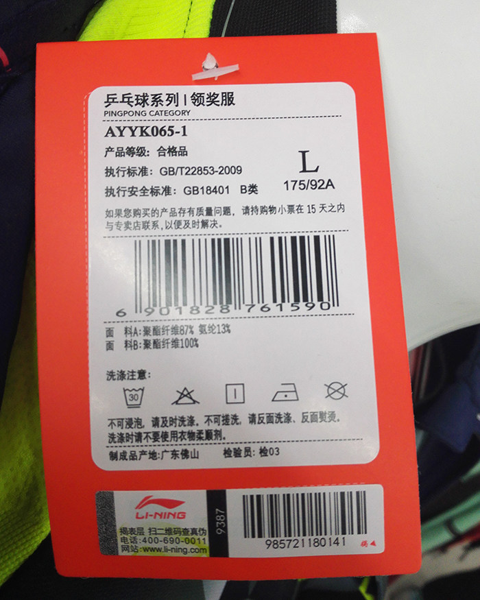 Оригинал Li Ning Suzhou World настольный теннис Национальная команда получает Ayyk065-1 с антиуборочной национальной службой
