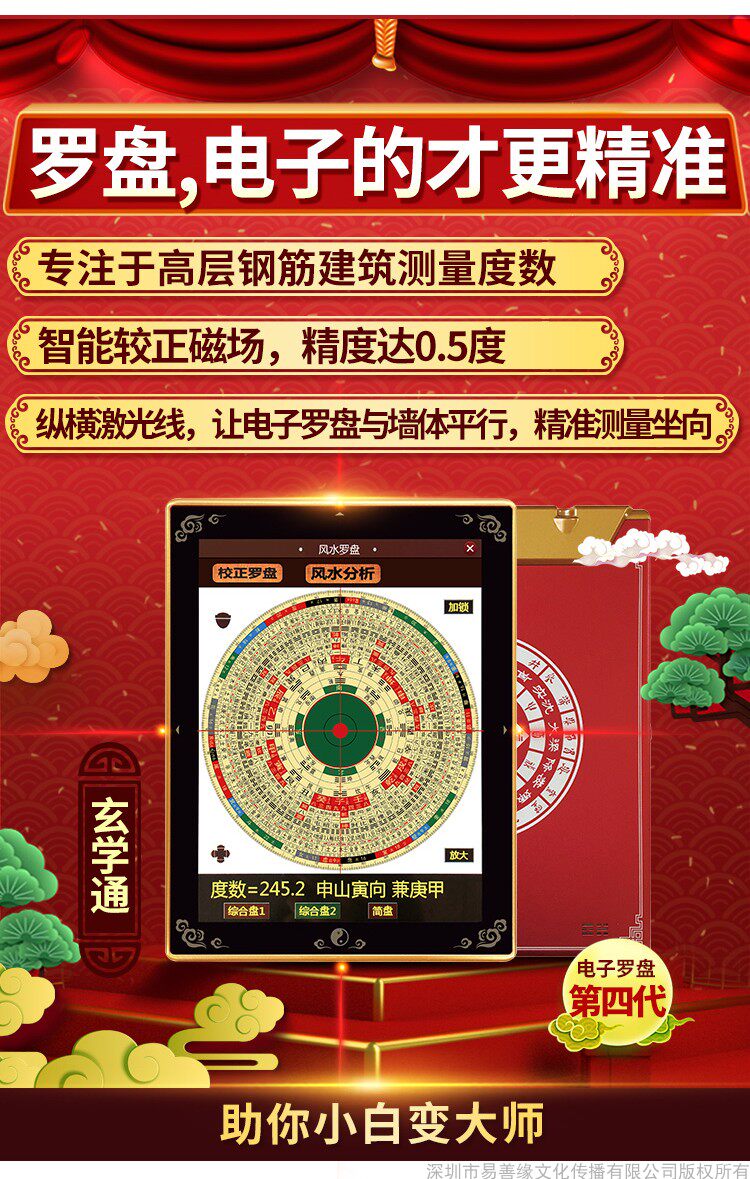 Xuanxue venti water electronics four four поколение полностью могу версия Гроссмейстер версия оригинал в подарок Четырехчасовый лазер в стойке компаса свет Точность