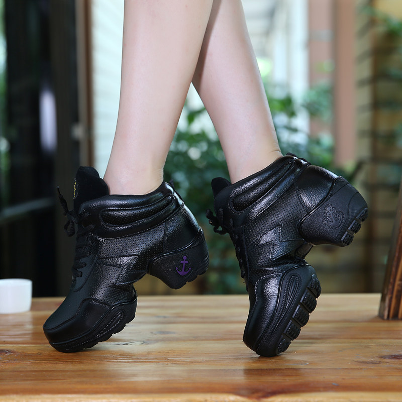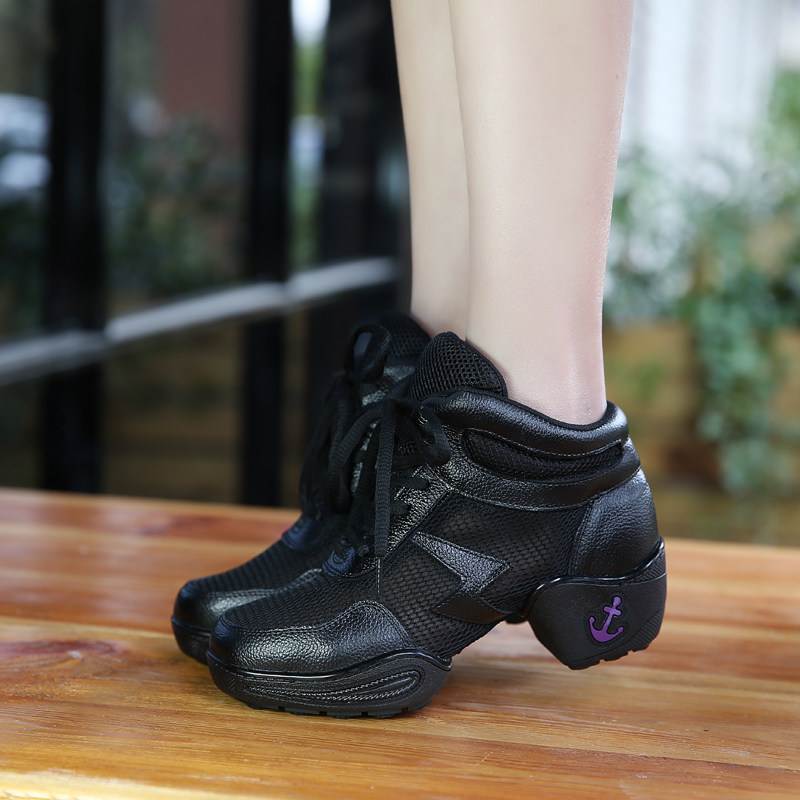 Драгоценный из натуральной кожи танцевальная обувь Женская весна и лето новая коллекция Танцевальная обувь воздухопроницаемый Сетевое мягкое дно поколение Танцевальная квадратная танцевальная обувь