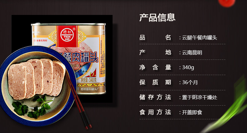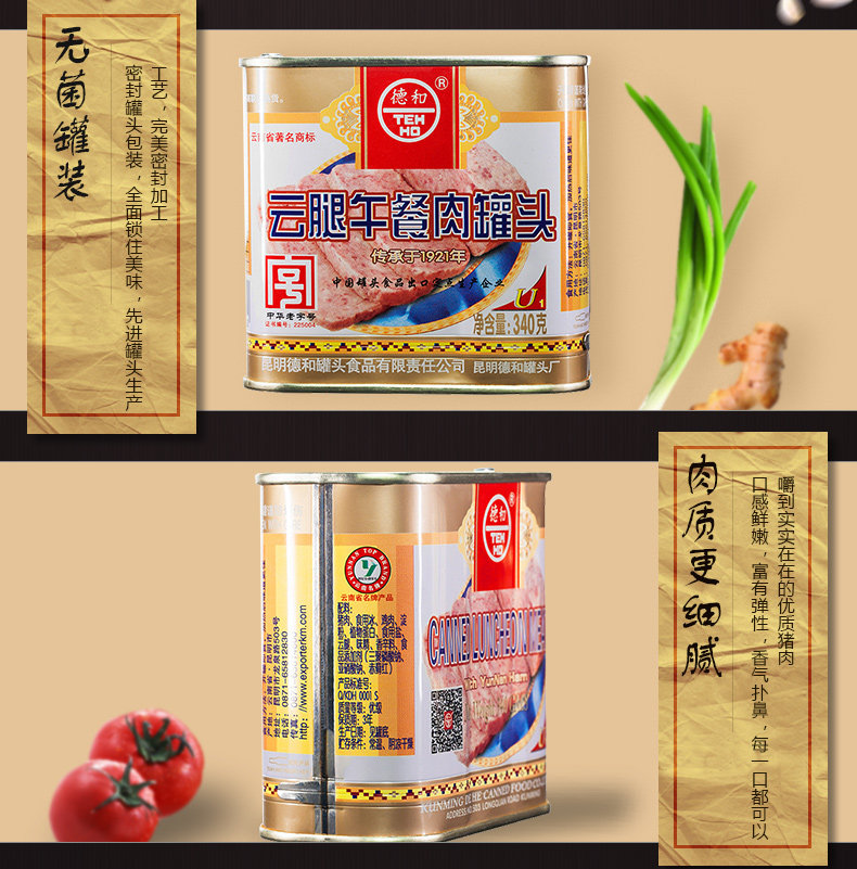 Дехэ Юнь мясные консервы с мясом 340 г ветчина быстрого приготовления консервы Юньнань специальность