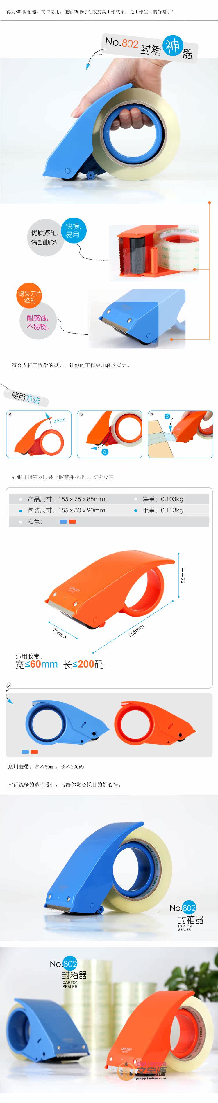 Дели Deli Carton Sealer 802 Ленточный резак Подходит для лент шириной 60 мм и длиной не более 200 ярдов.