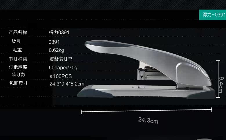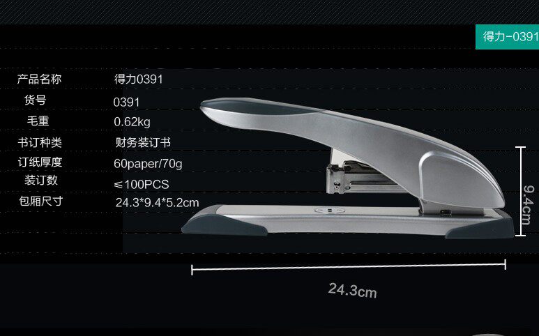 Deli 0391 Stapler Office Stapler Размер тяжелого типа утепленный Большая подписка для бронирования средней носителя толстая Слой кронштейна большой размер Сотрудник финансовый тяжелый долг утепленный степлер