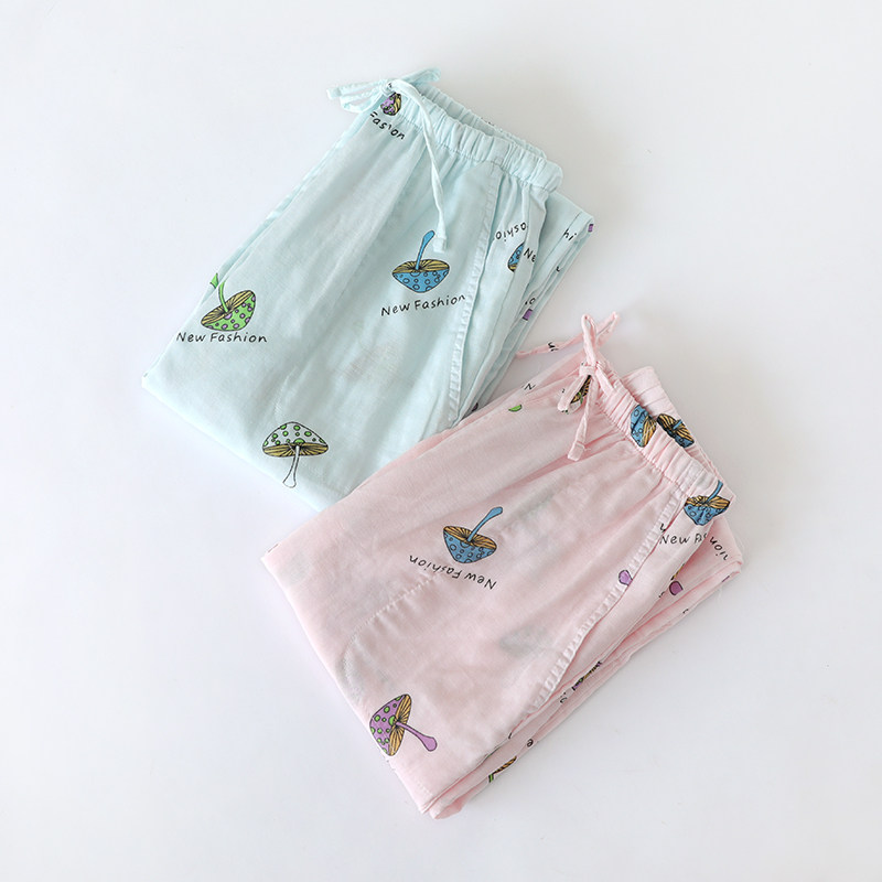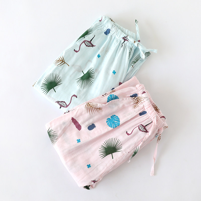 Весна, лето и падение новая коллекция Спящие штаны женский штаны трикотажный Японский клетчатый чистый хлопок Домашнее задание полностью хлопок Марлевая свободная один Кусок