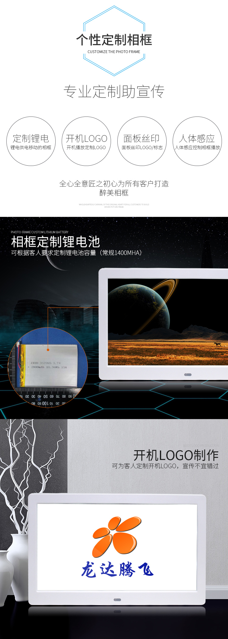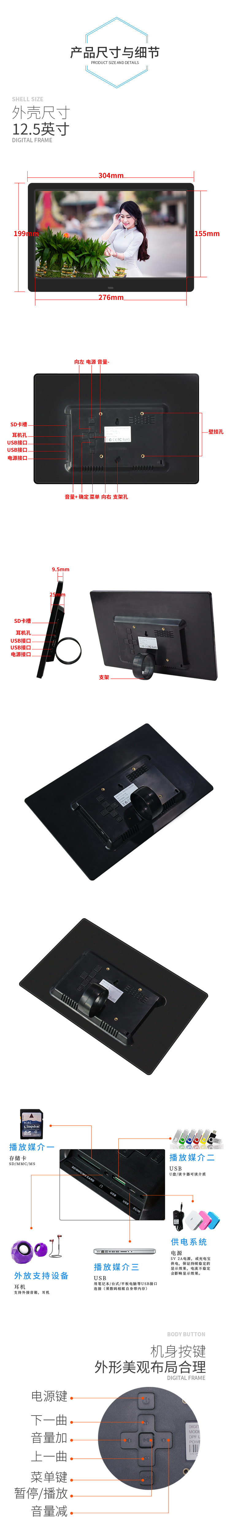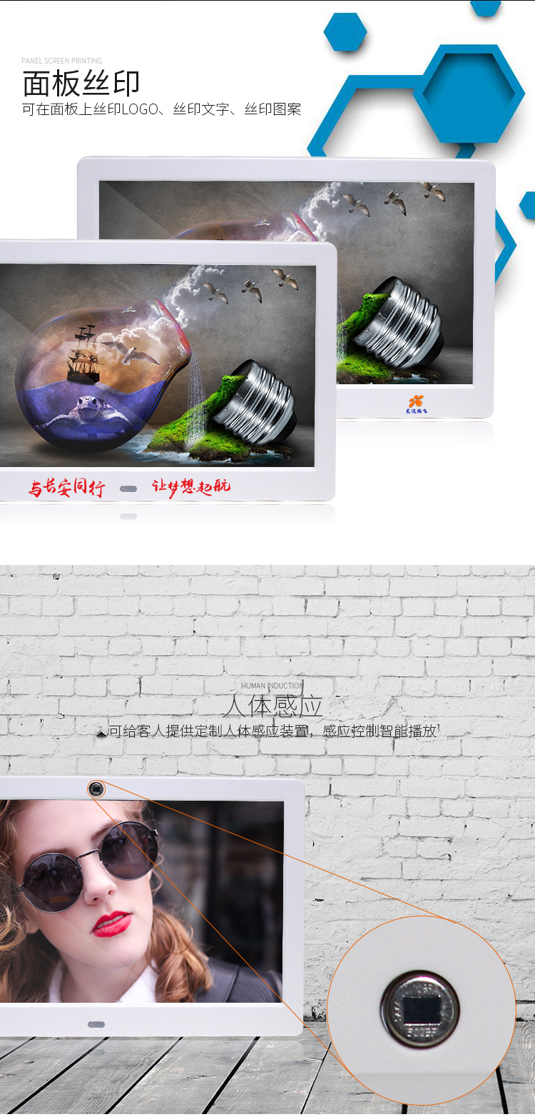 Светодиодный экран 12 дюймов 12,5 дюйма 14 дюймов 15 дюймов цифровая фоторамка Super высокая Цин Электронный фотоальбом Реклама Машина Настенные Висячие картины