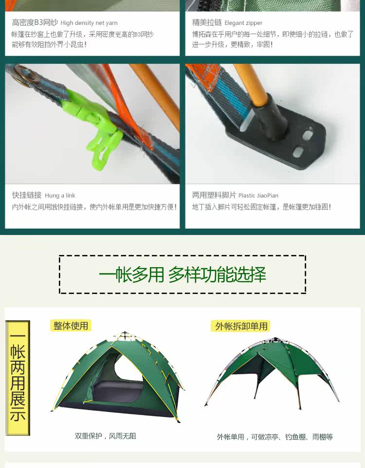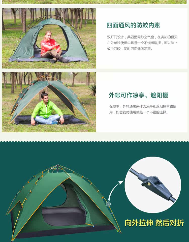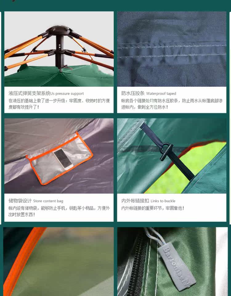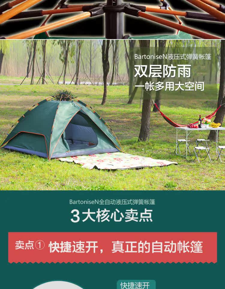 Бартонизен Палатка 3-4 Люди полностью автоматическая Жидкая бомба двухслойный Двойная дождевая палатка комплект Отдых на природе