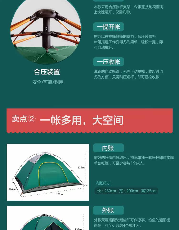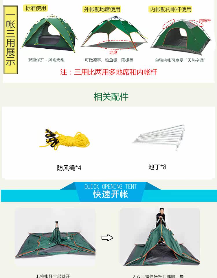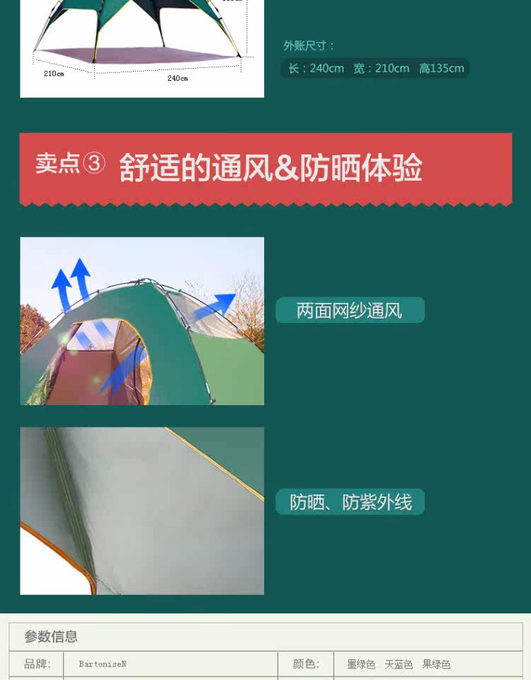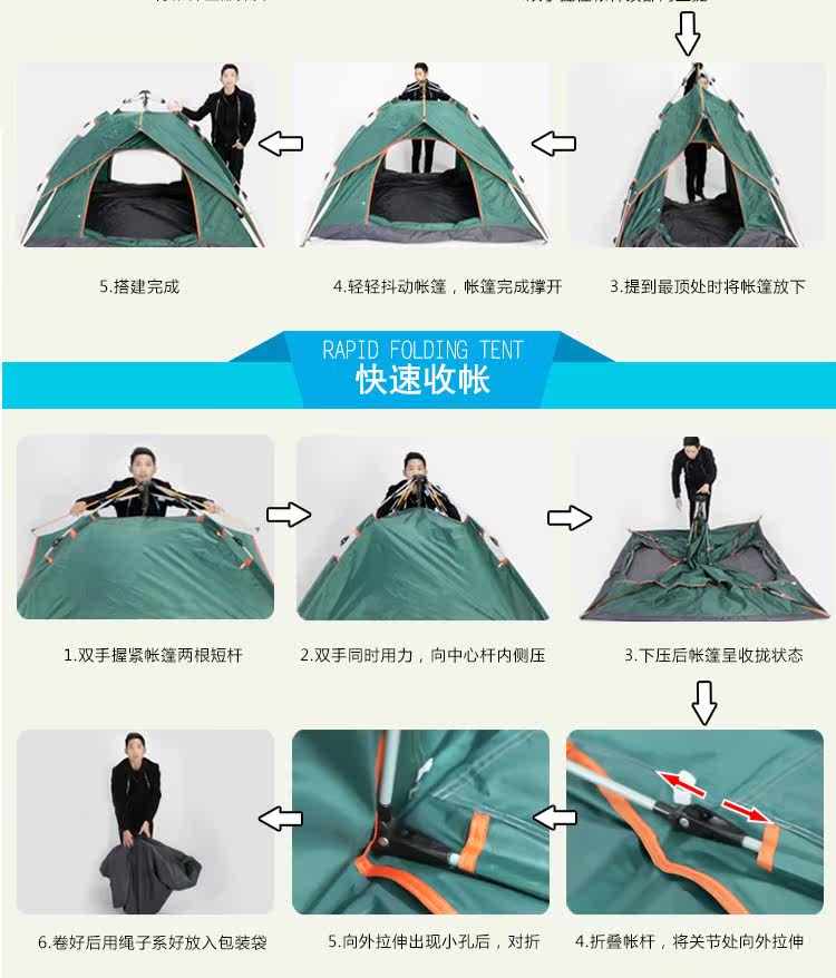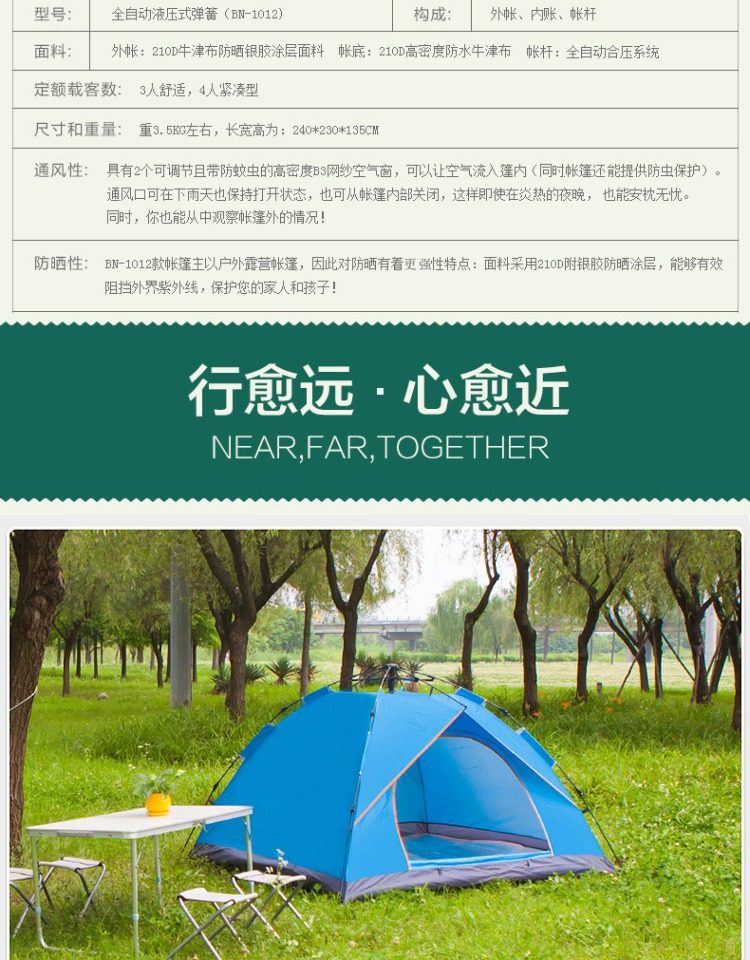 Бартонизен Палатка 3-4 Люди полностью автоматическая Жидкая бомба двухслойный Двойная дождевая палатка комплект Отдых на природе