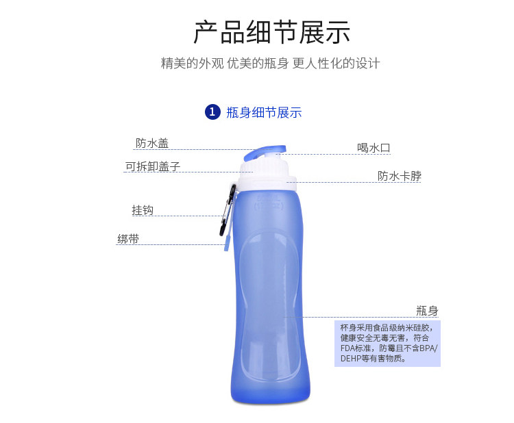 Портативная силикагелевая бутылка для воды для путешествий, чашка, сумка