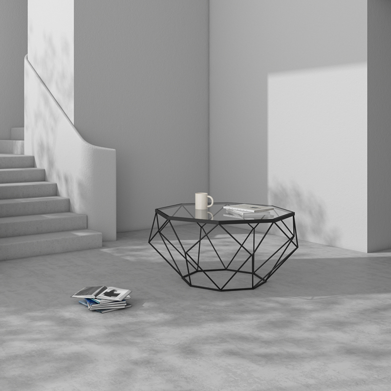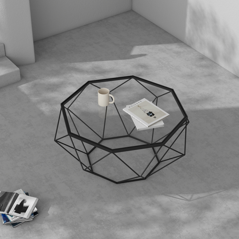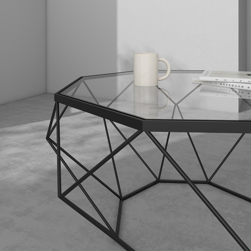Nordic творческий размер квартира гостиная кованое железо закаленное стекло журнальный столик круглый восьмиугольный прозрачный стол простой поколение