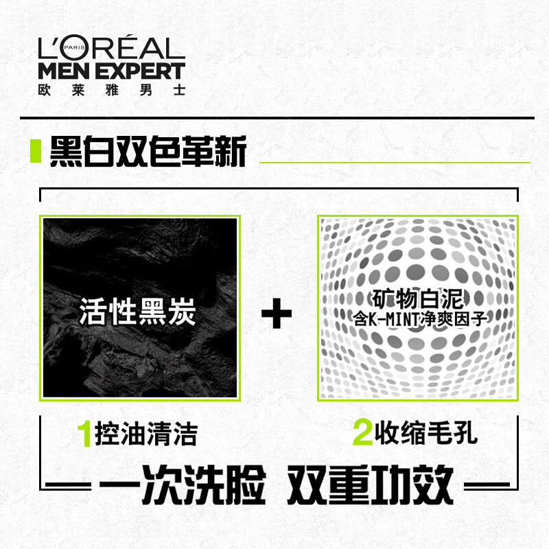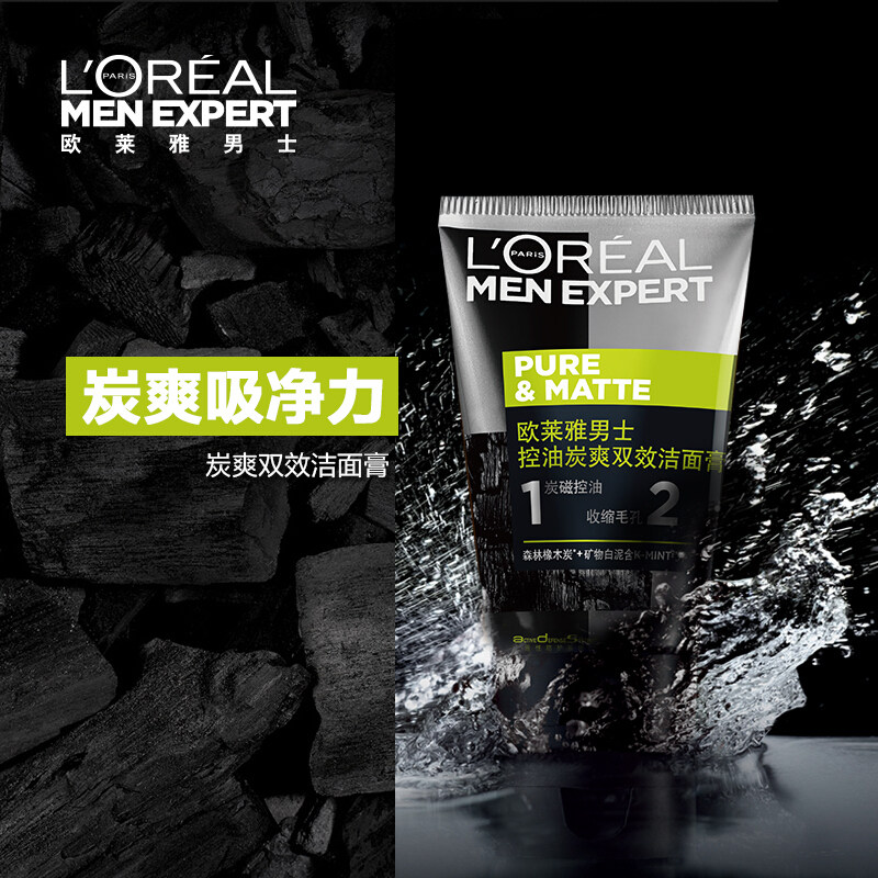 L'Oreal. мужской Контроль масла для лица молока Угол прохладный двойной эффект кремовой очистки термоусадочные поры официальный флагманский магазин оригинал
