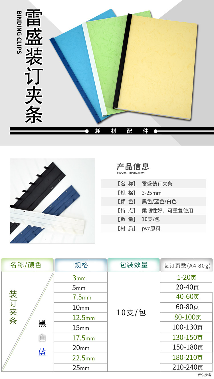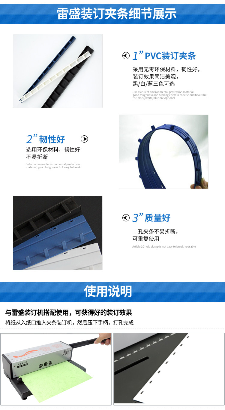 Lei Sheng пластиковый переплетный клип полосатый A3A4 стандартный Bookwear Binding. полосатый 21 отверстие ручной работы машины полосатый Давление на десять отверстий полосатый Сертификат файла с чеком Офисный договор Документ Привязка пластиковых клипов полосатый