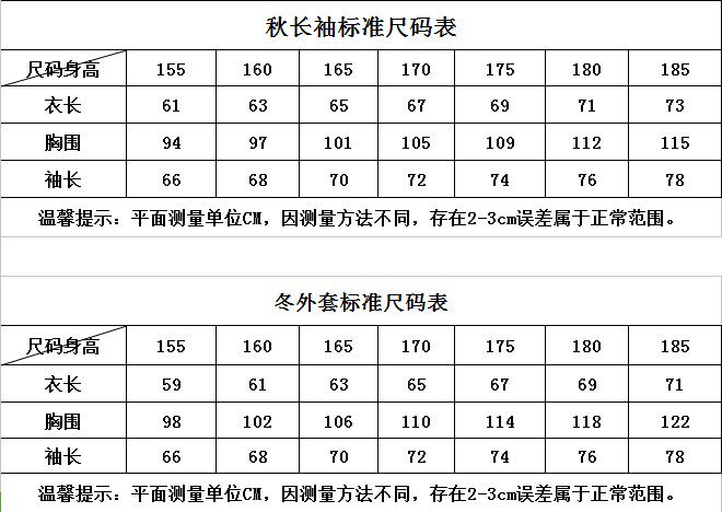 - 全市统一款/外套+冬长裤(厚)