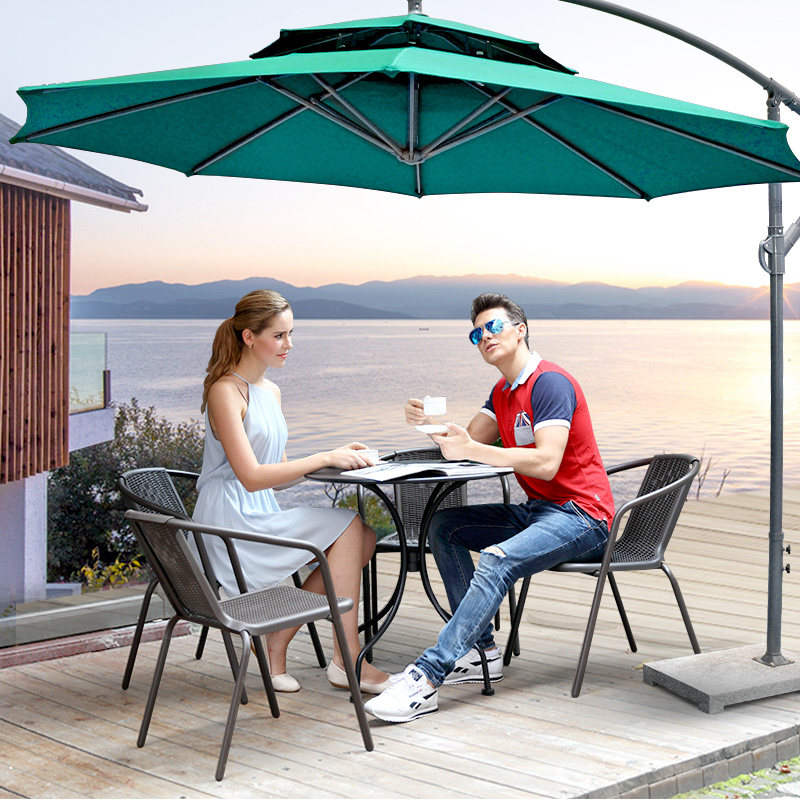 Уличные столы и стулья копия Стул из ротанга на террасе на открытом воздухе, чайный магазин, двор водонепроницаемый Стол стул из ротанга из кованого железа с комбинацией зонтиков