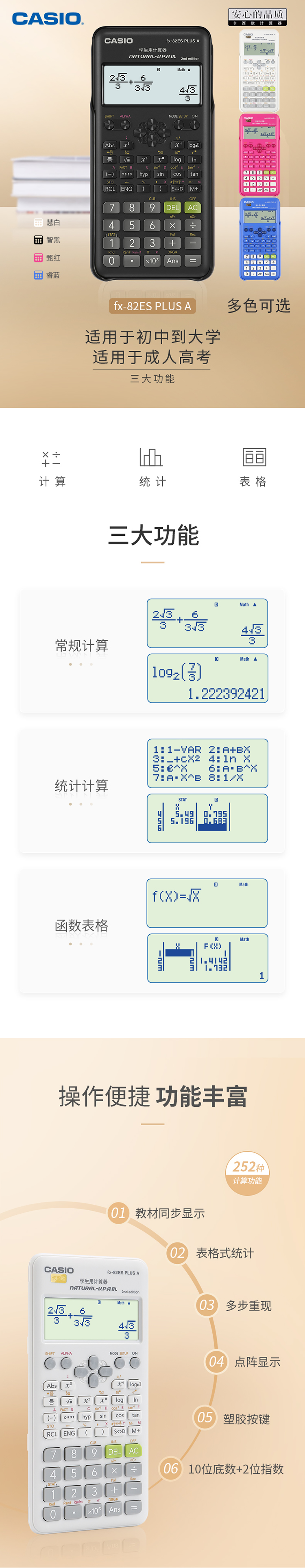 Casio FX-82ES плюс многофункциональный калькулятор тестирования студента 82CN X Научный компьютер