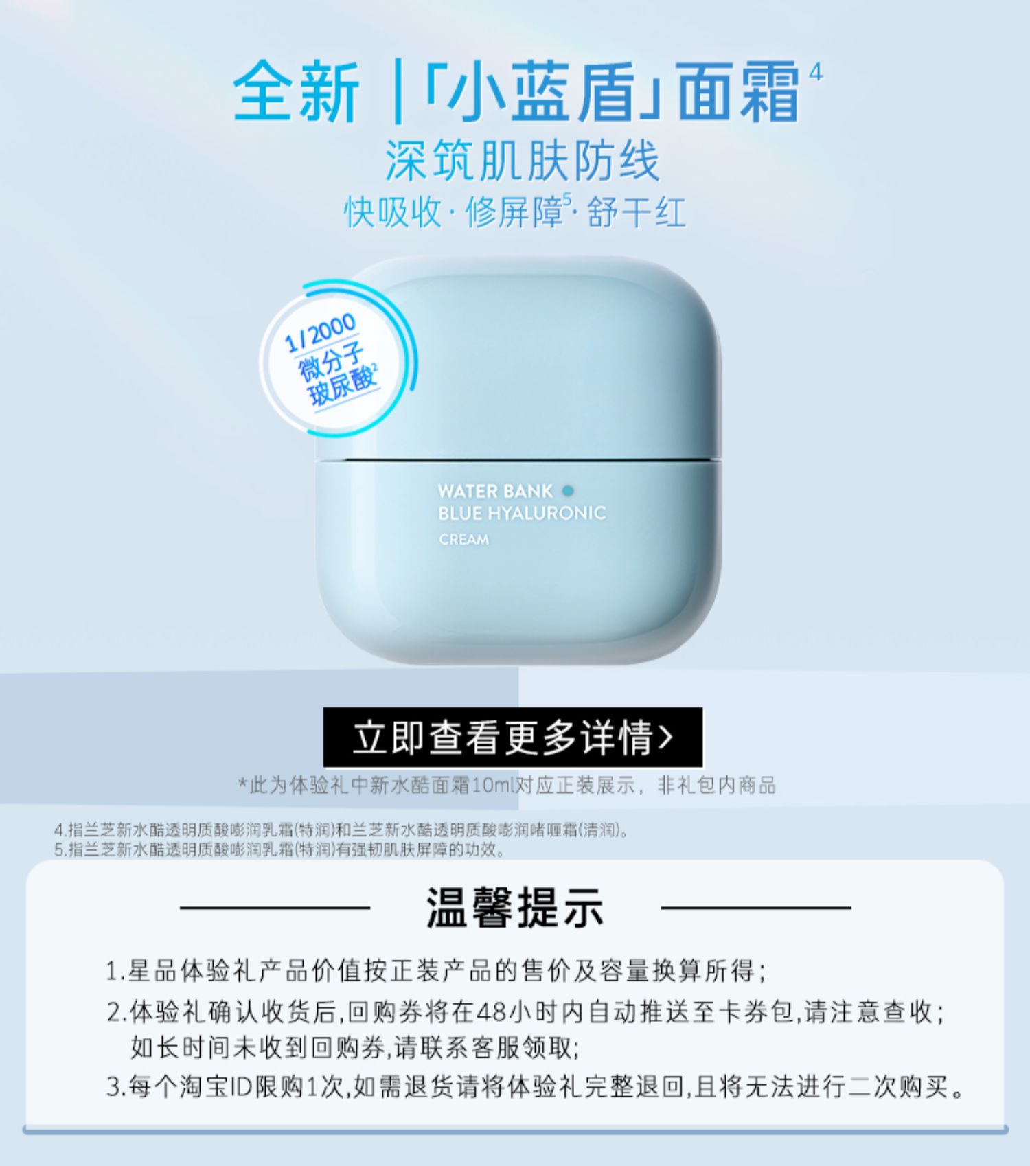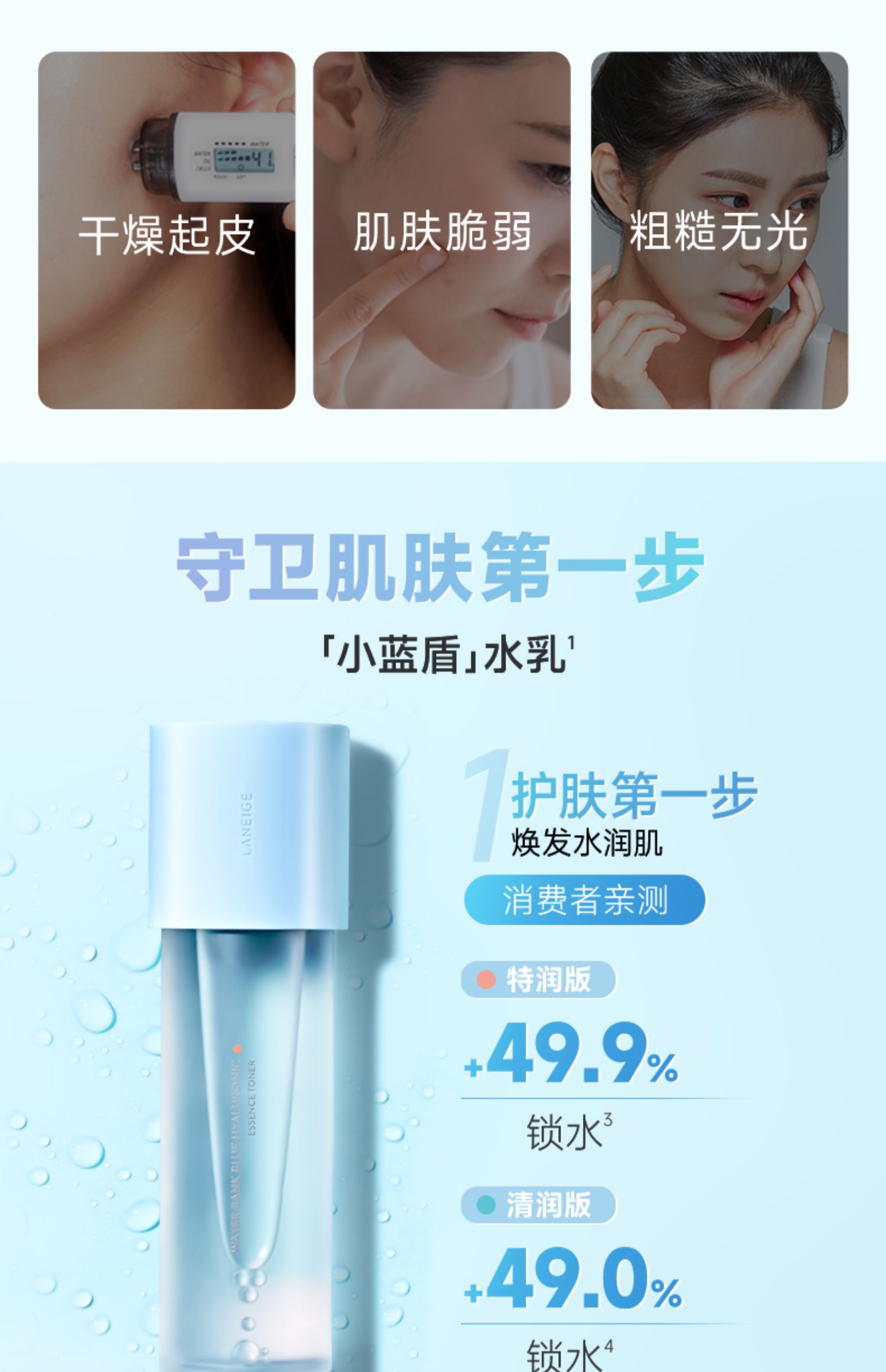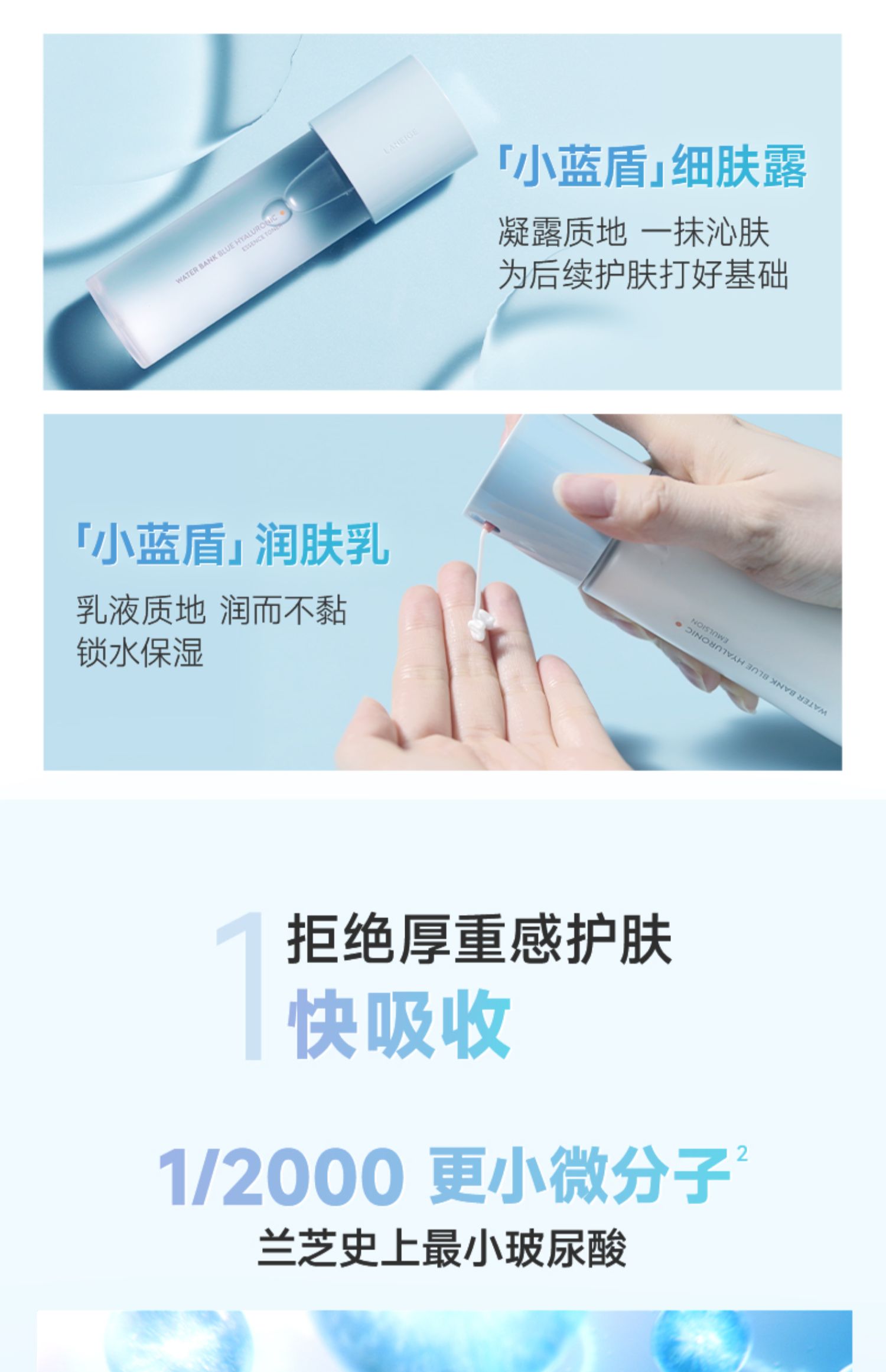 【Эксклюзивный】Лишать новый Водяная прохладная вода сырой воды уход за кожей комплект Небольшой синий Щит увлажняющий воду питательную свежую ремонт