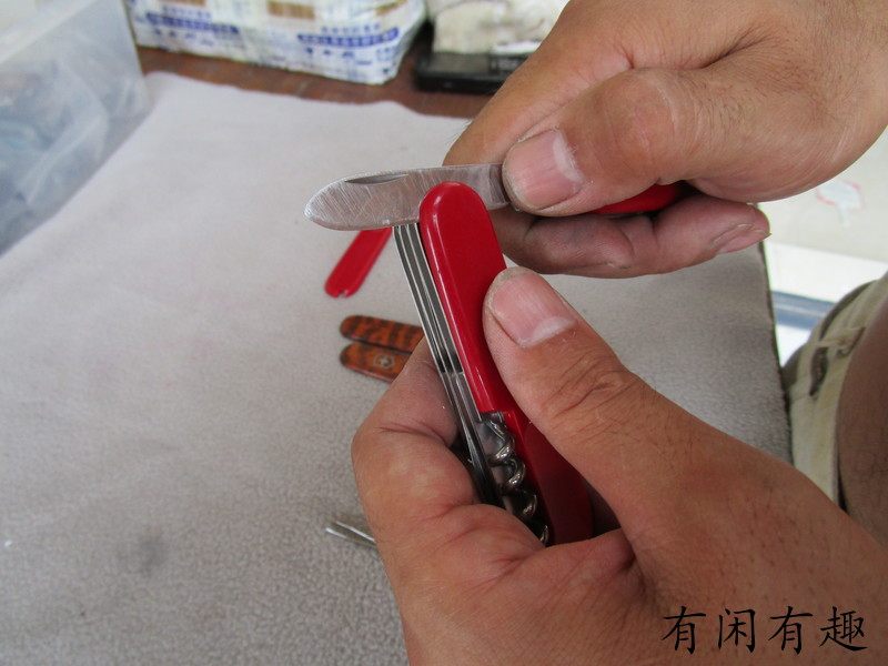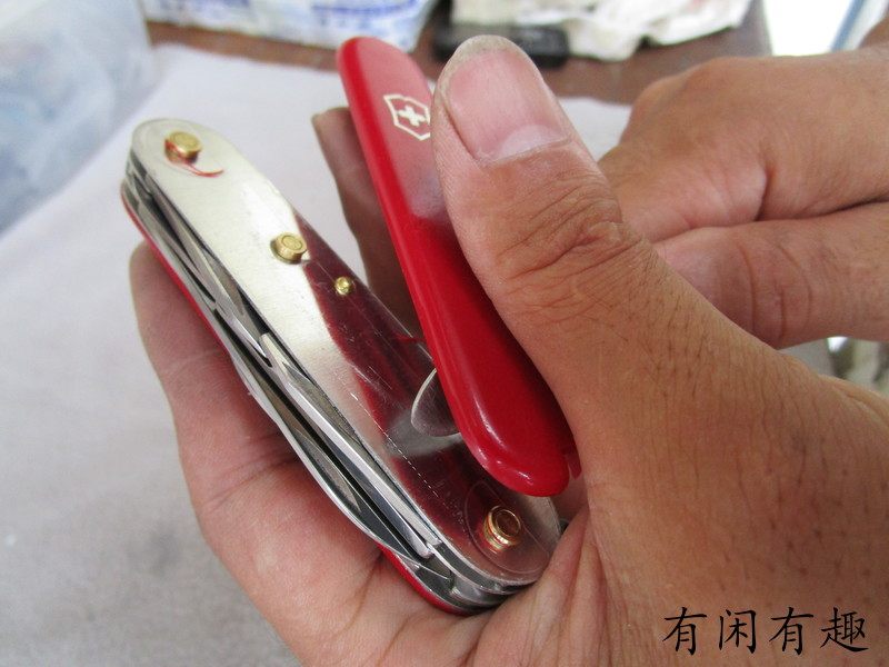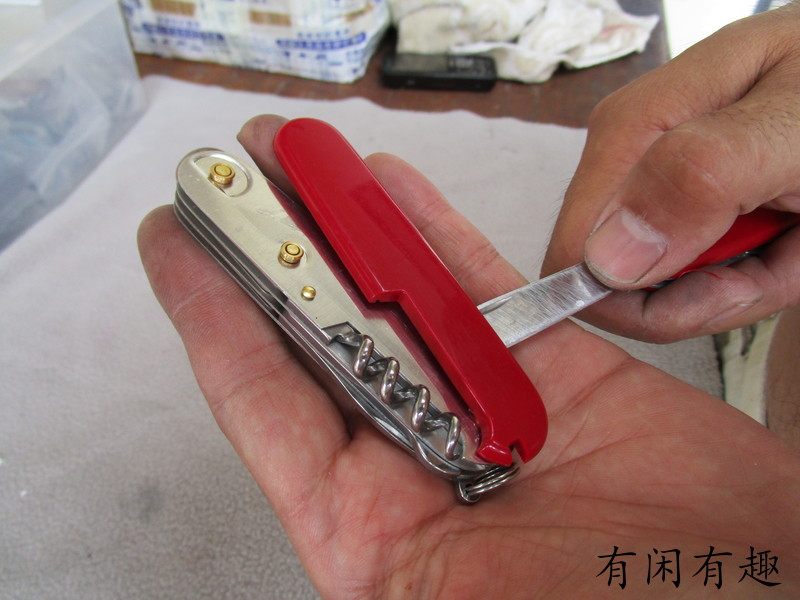 Затем вторая заклепка, третья, швейцарский армейский нож. сторона В целом имеет 4 заклепки, имеет 3 можно использовать для плотного пластика