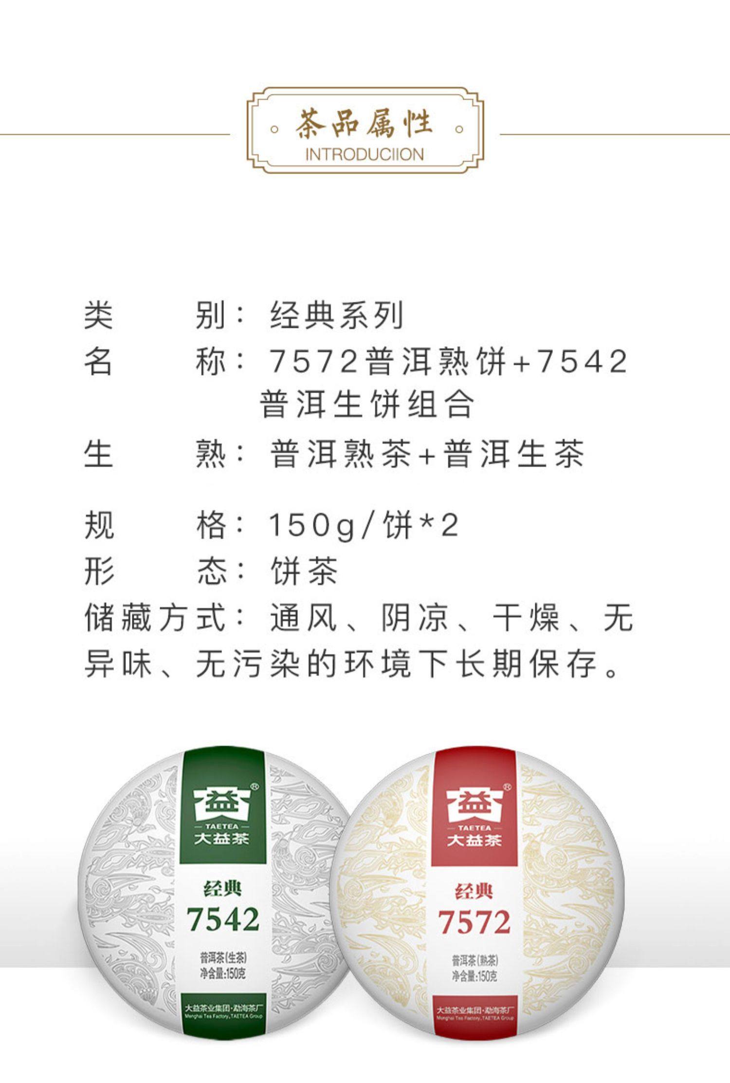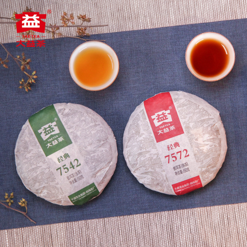 Dayi Pu'er чай стандартный Стержень 7542 Сырой чай 150G + 7572 Приготовленный чай 150 г Комбинация