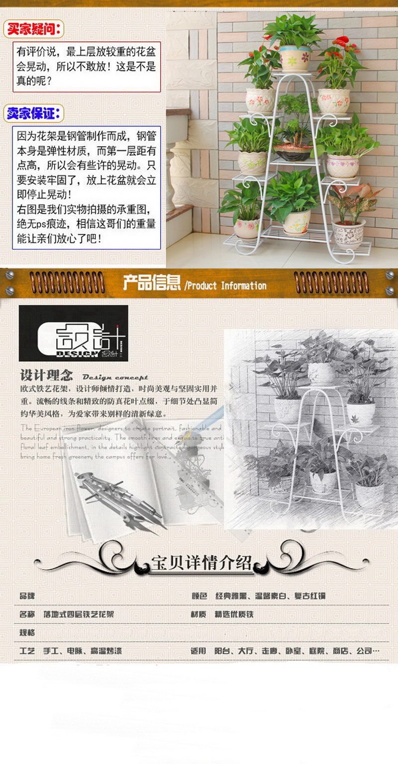 Цветочная полка многоэтажная крытая спец. предложение Домохозяйственный балкон Полка из кованого железной комнаты сберегательный цветок в горшке зеленый свет