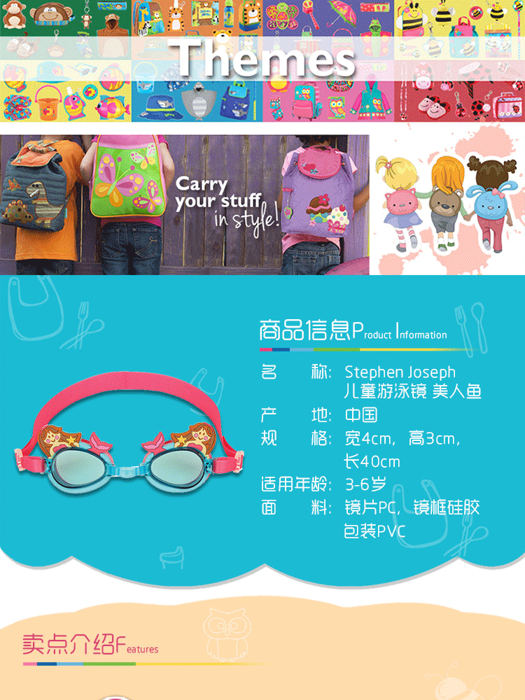 Stephen Joseph детские плавание зеркало Плавательный инвентарь мужские и женские Детский дайвинг глаз зеркало Анти-УФ и противотуманный мультфильм