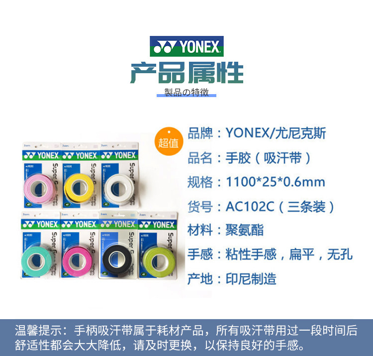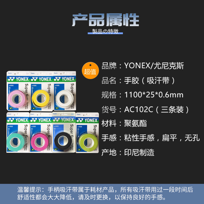 Yonex Yonex AC102C / EX Клей для рук YY Клей для ручек нескользящие Впитывающая пот липкая лента впитывающая пот